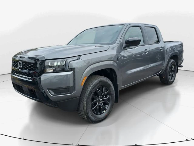 Vehicle: 2026 Nissan Frontier SV - Gun Metallic. The 2026 Nissan Frontier SV presents a bold appearance with its Gun Metallic exterior, complemented by a contemporary Charcoal interior. As a robust 4D Crew Cab truck, this new Frontier is designed to tackle both work and play with ease, powered by a 3.8L DI DOHC 24V V6 engine paired with a 9-speed automatic transmission. This Frontier is suited for those who seek a combination of power, cutting-edge technology, and safety. It includes features tailored for both rough terrains and city roads. Enjoy innovations such as the heated seats and electronic stabilizing features that provide comfort and confidence in various driving conditions.