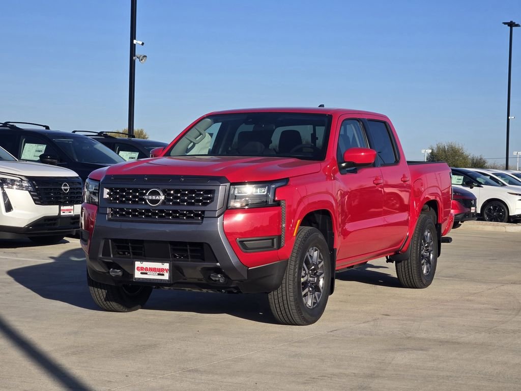 Red Alert 2026 Nissan Frontier SV 4WD 9-Speed Automatic with Overdrive 3.8L DI DOHC 24V V6 This 2026 Nissan Frontier comes equipped with, Bluetooth, Backup Camera, Alloy Wheels, Apple CarPlay/Android Auto, Automatic Emergency Braking, Brake Assist, Heated Seats, Keyless Entry, Lane Departure Warning, Navigation System, Remote Start, Stability Control, USB Port, 4WD/4x4, AWD, Navigation, Blind Spot Monitoring, Parking Sensors, Heated Seats, CarPlay, Multi Zone Climate Control, Bluetooth, Backup Camera, Remote Start, Tow Package, 4WD, 17" Alloy Wheels. Recent Arrival! March on down and get acquainted with our staff! We're located just off of HWY 377 IN Granbury TEXAS. We proudly serve Granbury, Fort Worth, Dallas, Plano, White Settlement, Weatherford, Hurst, Arlington, and Benbrook, Stephenville, Camanche, Brownwood, Cisco, Cleburne, Alvarado, Burleson, Mansfield, Meneral Wells, Abilene. Price includes: $2500 - Nissan Customer Cash. Exp. 03/31/2026