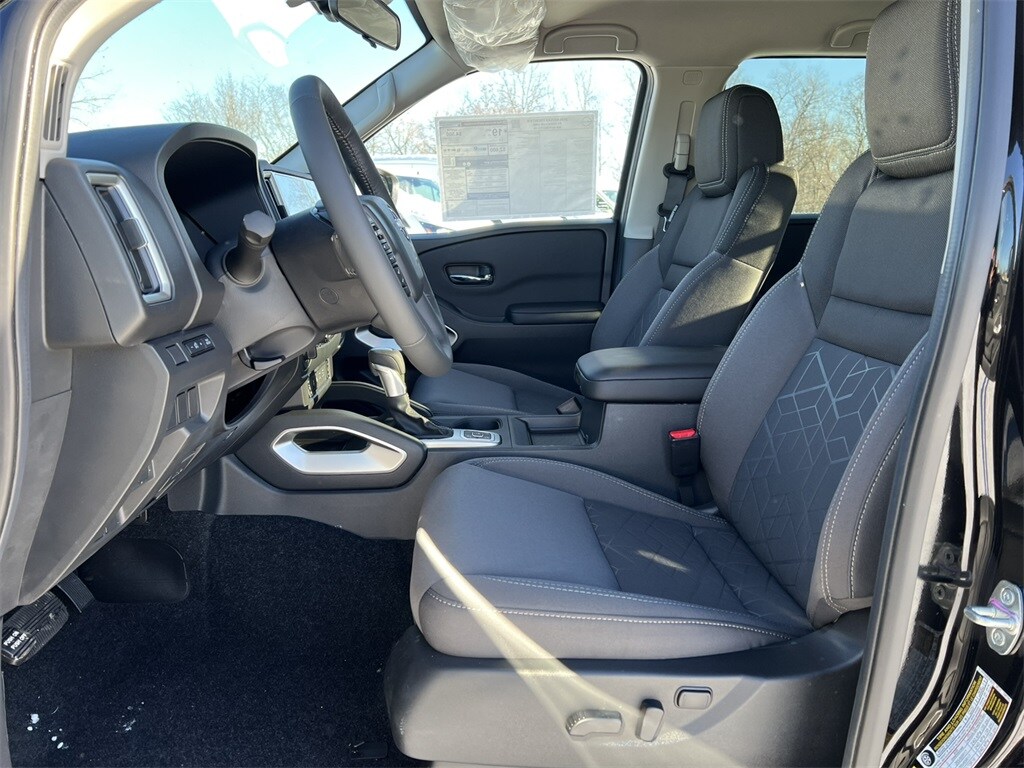 Super Black 2026 Nissan Frontier SV 4WD 9-Speed Automatic with Overdrive 3.8L DI DOHC 24V V6. 4WD, 17" Alloy Wheels, 3.692 Axle Ratio, 4-Wheel Disc Brakes, 6 Speakers, ABS Brakes, Air Conditioning, All Season Floor Mats, All-Weather Content Package, Alloy wheels, AM/FM Radio, Available Sirius XM Radio, Anti-whiplash front head restraints, Auto High-beam Headlights, Blind Spot Warning, Brake Assist, Bumpers: body-color, Delay-off headlights, Driver door bin, Driver vanity mirror, Drop-In Bed Liner & Bumper Step, Dual front impact airbags, Dual front side impact airbags, Electronic Stability Control, Emergency communication system, Front anti-roll bar, Front Bucket Seats, Front Center Armrest, Front reading lights, Front wheel independent suspension, Fully automatic headlights, Heated Front Seats, Heated Leather Steering Wheel, HVAC - Dual-Zone Front Auto A/C, Illuminated Entry, Knee airbag, Low tire pressure warning, Occupant sensing airbag, Overhead airbag, Overhead console, Panic Alarm, Passenger door bin, Passenger vanity mirror, Power Adjusting Driver Seat, Power Sideview Mirrors, Power steering, Power Windows, Premium Cloth Seat Trim, Radio data system, Radio: SXM/AM/FM/AUX/USB Audio System, Rear anti-roll bar, Rear seat center armrest, Rear side impact airbag, Rear Step Bumper, Remote Engine Starter, Remote Keyless Entry, Security System, Speed Control, Speed-sensing steering, Splash Guards, Split Folding Rear Seat, Steering Wheel Mounted Audio Controls, Tachometer, Telescoping steering wheel, Tilt steering wheel, Tow Package, Tow/Haul Mode Switch, Traction Control, Trip computer, Variably intermittent wipers, Voltmeter. #1 New Nissan Dealer in West Michigan. We sell more, you pay less! Recent Arrival! Discover the Fox Difference!