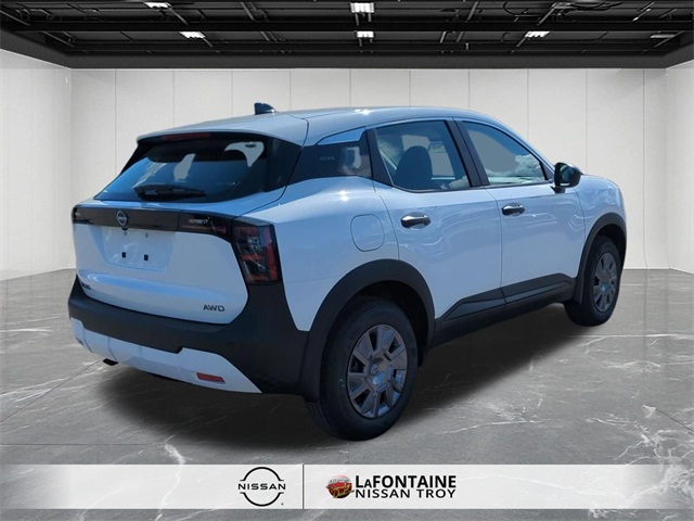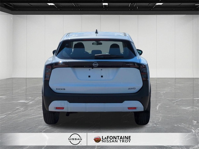 Fresh Powder 2026 Nissan Kicks S AWD CVT with Xtronic 2.0L DOHC 27/34 City/Highway MPG.