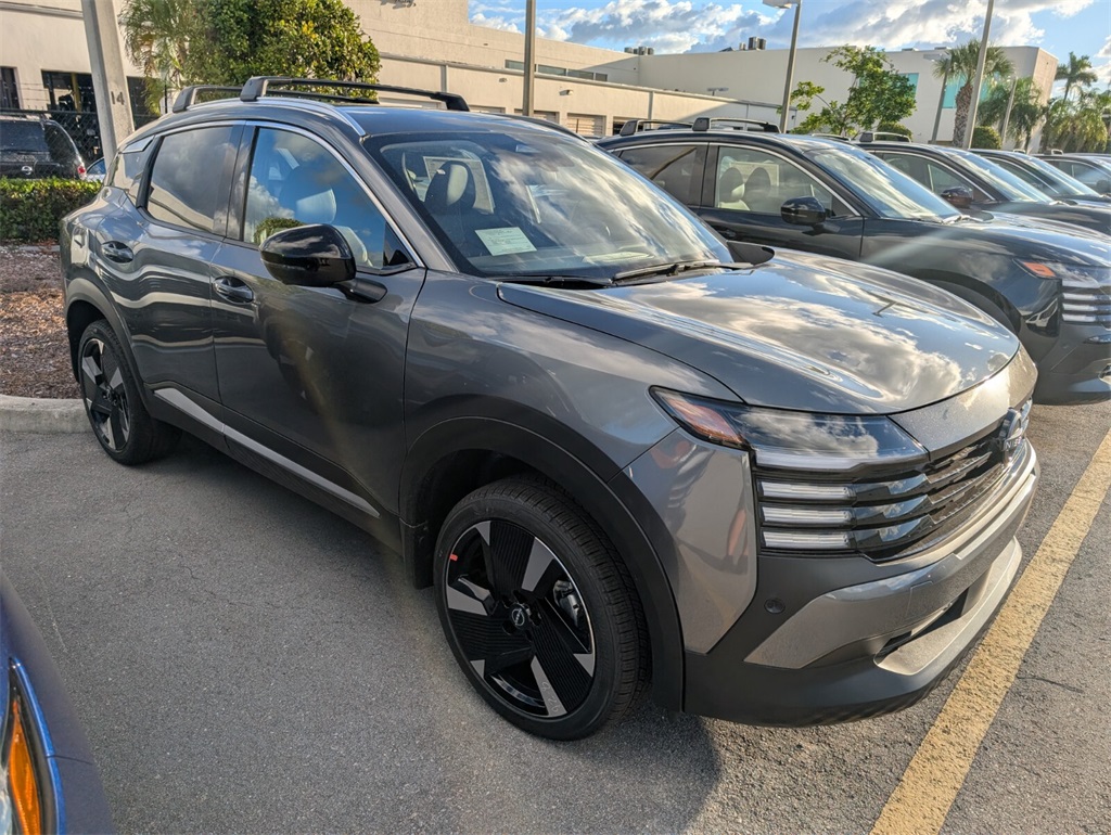 2026 Nissan Kicks SR Gun Metallic 28/35 City/Highway MPG. All pricing and details provided are believed to be accurate, but we do not warrant or guarantee such accuracy. New vehicles offered may be eligible for manufacturer incentives which may change at any time and are subject to incentive qualification criteria and requirements, and which may be contingent upon manufacturer finance company approval. Manufacturer incentive data and vehicle features information is provided by third parties and believed to be accurate as of the time of publication. Vehicle information is based upon standard equipment and may vary from vehicle to vehicle. Please contact the dealership for complete vehicle information to correct error or omissions. Prices and payments do not include sales tax or other taxes, tag, title, registration fees, government fees and tag agency fees are not included in the quoted price. Electronic Registration Filing fee of $549, Pre-delivery Service Fee of $1,295 and 2-year LoJack activation are not included in the quoted price. While great effort is made to ensure the accuracy of the information on our website, errors do occur. Further, vehicle listings within this website may not reflect all accurate vehicle items. Accessories and colors may vary. Vehicle Photos may not match exact vehicles. Please confirm information and vehicle price and availability of incentives by calling or visiting us at the dealership. Manufacturer’s Suggested Retail Price (MSRP) is for customer information and customer comparison purposes only, and the actual sales price may be less or more than MSRP depending on market conditions.