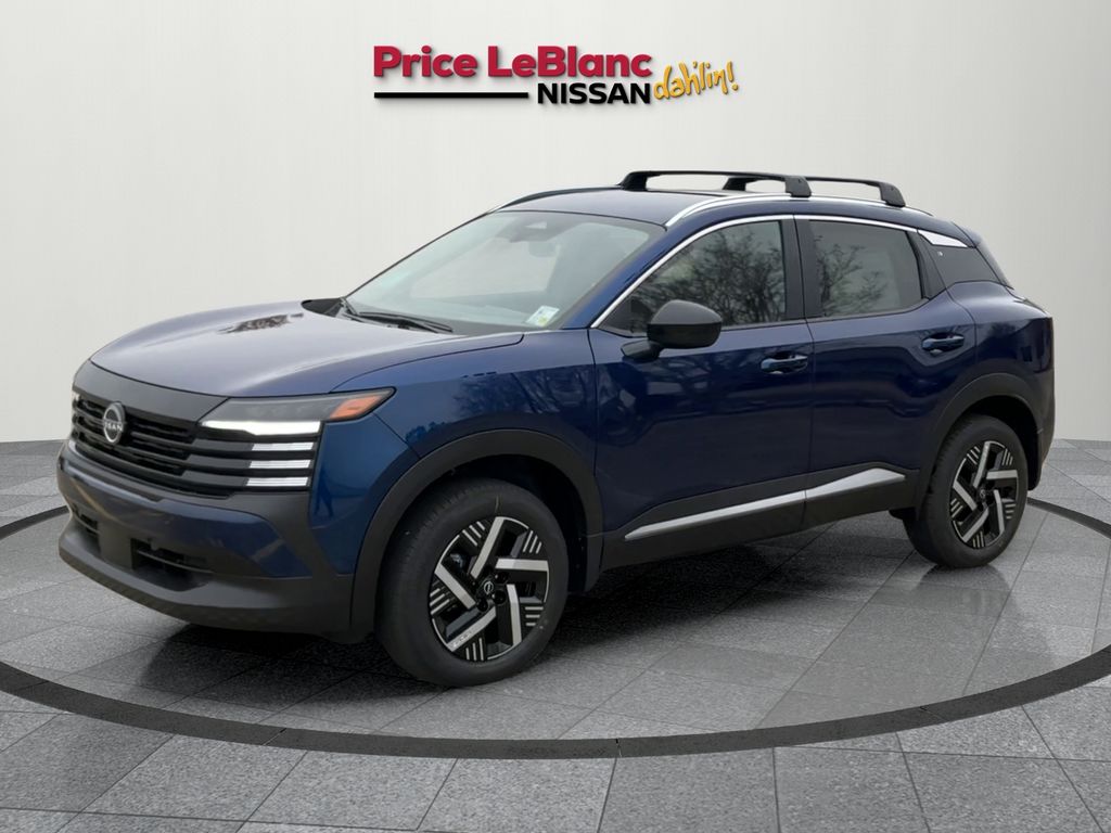 Deep Blue Pearl 2026 Nissan Kicks SV FWD with 4-Wheel Disc Brakes, ABS brakes, Air Conditioning, AM/FM radio, Auto High-beam Headlights, Automatic temperature control, Blind Spot Warning, Brake assist, Cold Weather Package, Crossbars, Driver vanity mirror, Electronic Stability Control, Emergency communication system, Exterior Parking Camera Rear, Front Bucket Seats, Front Center Armrest, Front reading lights, Fully automatic headlights, Heated Front Seats, Heated Mirrors, Illuminated entry, Low tire pressure warning, NissanConnect featuring Apple CarPlay and Android Auto, Panic alarm, Passenger vanity mirror, Power door mirrors, Power steering, Power windows, Radio data system, Radio: AM/FM/SiriusXM Audio System, Rear Floor Heater Ducts, Rear window defroster, Rear window wiper, Remote keyless entry, Security system, Speed control, Speed-sensing steering, Sport steering wheel, Steering wheel mounted audio controls, Telescoping steering wheel, Tilt steering wheel, Traction control, Trip computer, Variably intermittent wipers. Recent Arrival! 28/35 City/Highway MPG