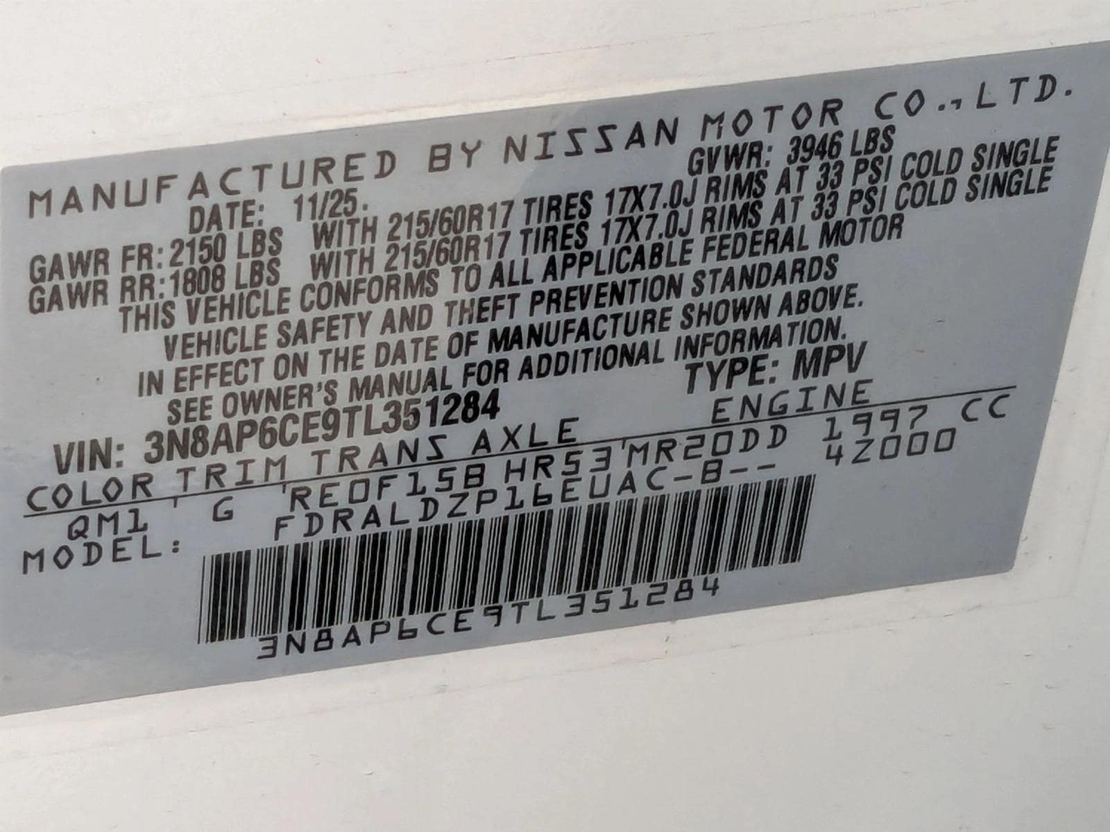 VIN: 3N8AP6CE9TL351284