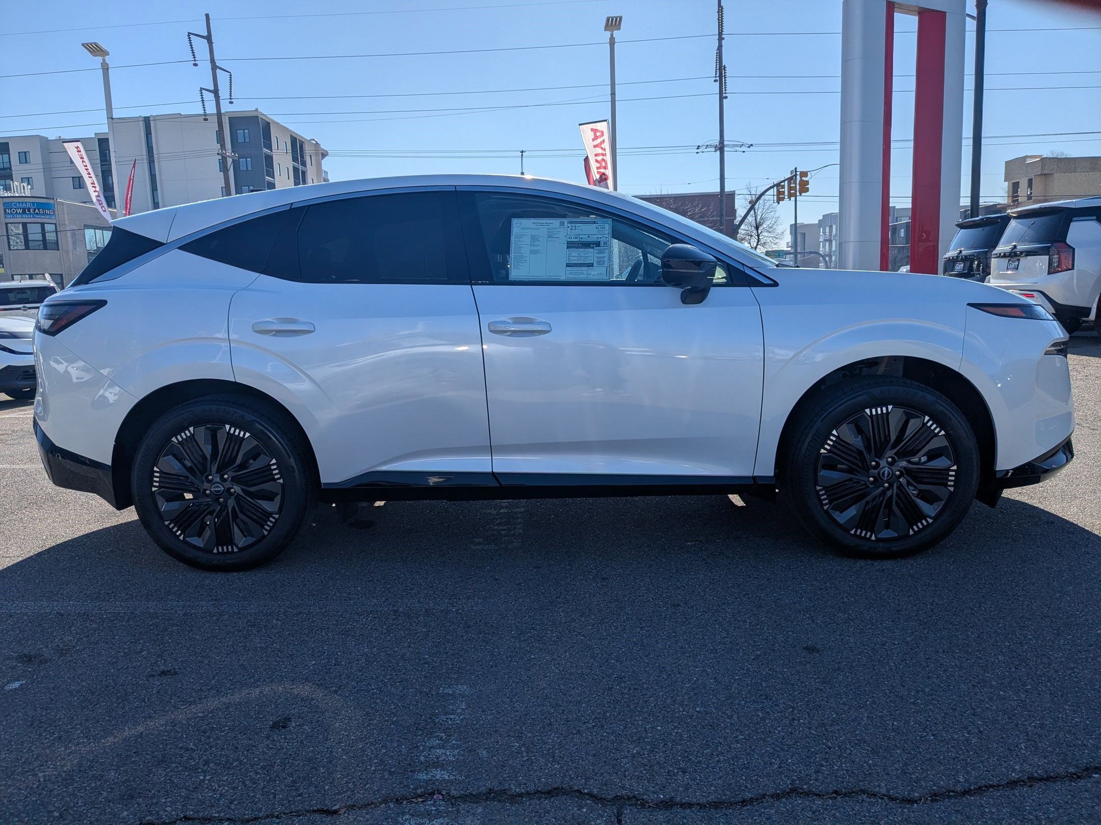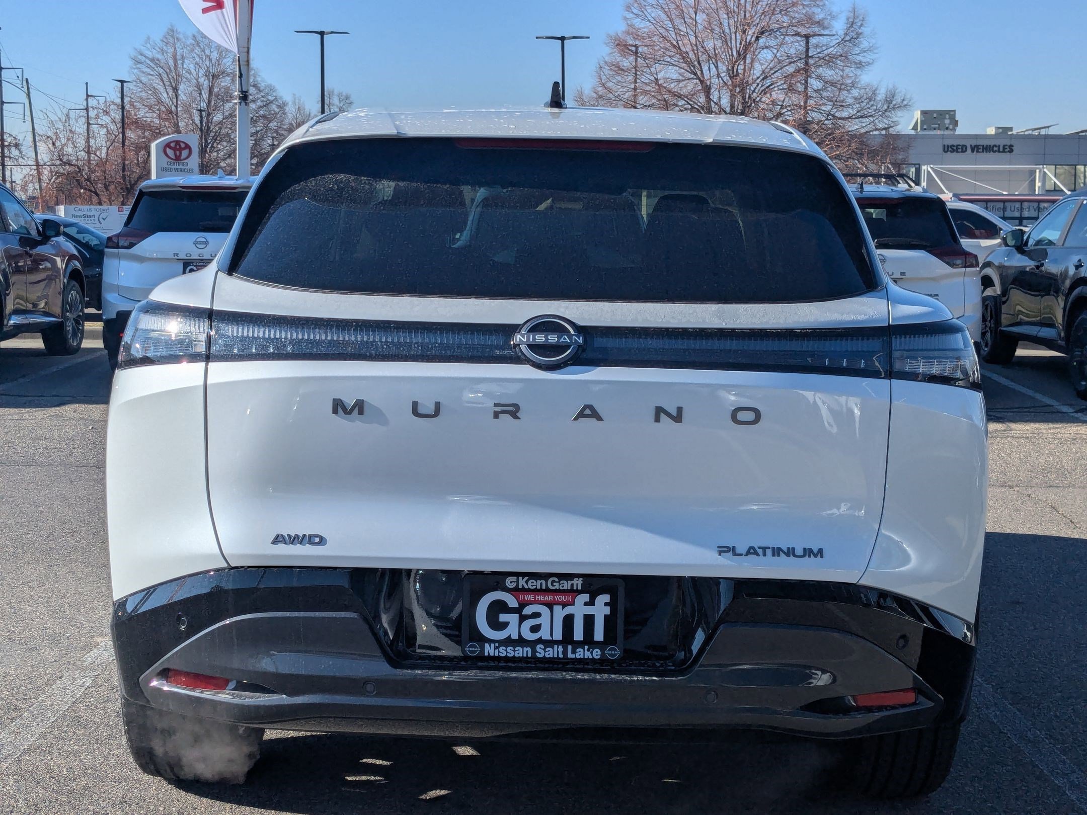 Don't miss the terrific bargain! Your time is almost up on this superb 2026 Nissan Murano Advertised Prices do not include any dealer installed options and advertised prices exclude leases. Priced below KBB Fair Purchase Price! Platinum AWD I4 9-Speed Automatic 9-Speed Automatic, AWD, 10 Speakers, 21 Alloy Wheels, 3-Position Cargo Area Protector, 4-Wheel Disc Brakes, ABS brakes, Air Conditioning, Alloy wheels, AM/FM radio: SiriusXM w/360L, Auto High-beam Headlights, Auto tilt-away steering wheel, Auto-dimming Rear-View mirror, Automatic temperature control, Brake assist, Bumpers: body-color, Cargo Net, Cargo Package, Carpeted Floor & Cargo Mats, Child-Seat-Sensing Airbag, Compass, Delay-off headlights, Driver door bin, Driver vanity mirror, Dual front impact airbags, Dual front side impact airbags, Electronic Stability Control, Emergency communication system: NissanConnect Services, First Aid Kit, Four wheel independent suspension, Front anti-roll bar, Front Bucket Seats, Front Center Armrest, Front dual zone A/C, Front reading lights, Fully automatic headlights, Garage door transmitter: HomeLink, Heads-Up Display, Heated & Ventilated Front Bucket Seats w/Massage, Heated door mirrors, Heated front seats, Heated rear seats, Heated steering wheel, Illuminated entry, Illuminated Kick Plates, Knee airbag, Low tire pressure warning, Memory seat, Navigation system: NissanConnect with Navigation and Services, Occupant sensing airbag, Outside temperature display, Overhead airbag, Overhead console, Painted Splash Guards, Panic alarm, Passenger door bin, Passenger vanity mirror, Power door mirrors, Power driver seat, Power Liftgate, Power moonroof: Panoramic, Power passenger seat, Power steering, Power windows, Premium Paint, Quilted Semi-Aniline Leather-Appointed Seat Trim, Radio data system, Radio: NissanConnect w/Hybrid Radio, Rain sensing wipers, Rear anti-roll bar, Rear reading lights, Rear seat center armrest, Rear side impact airbag, Rear window defroster, Rear window wiper, Remote keyless entry, Retractable Cargo Cover, Security system, Speed control, Speed-Sensitive Wipers, Split folding rear seat, Spoiler, Steering wheel memory, Steering wheel mounted audio controls, Tachometer, Telescoping steering wheel, Tilt steering wheel, Traction control, Trip computer, Turn signal indicator mirrors, Variably intermittent wipers, Ventilated front seats.