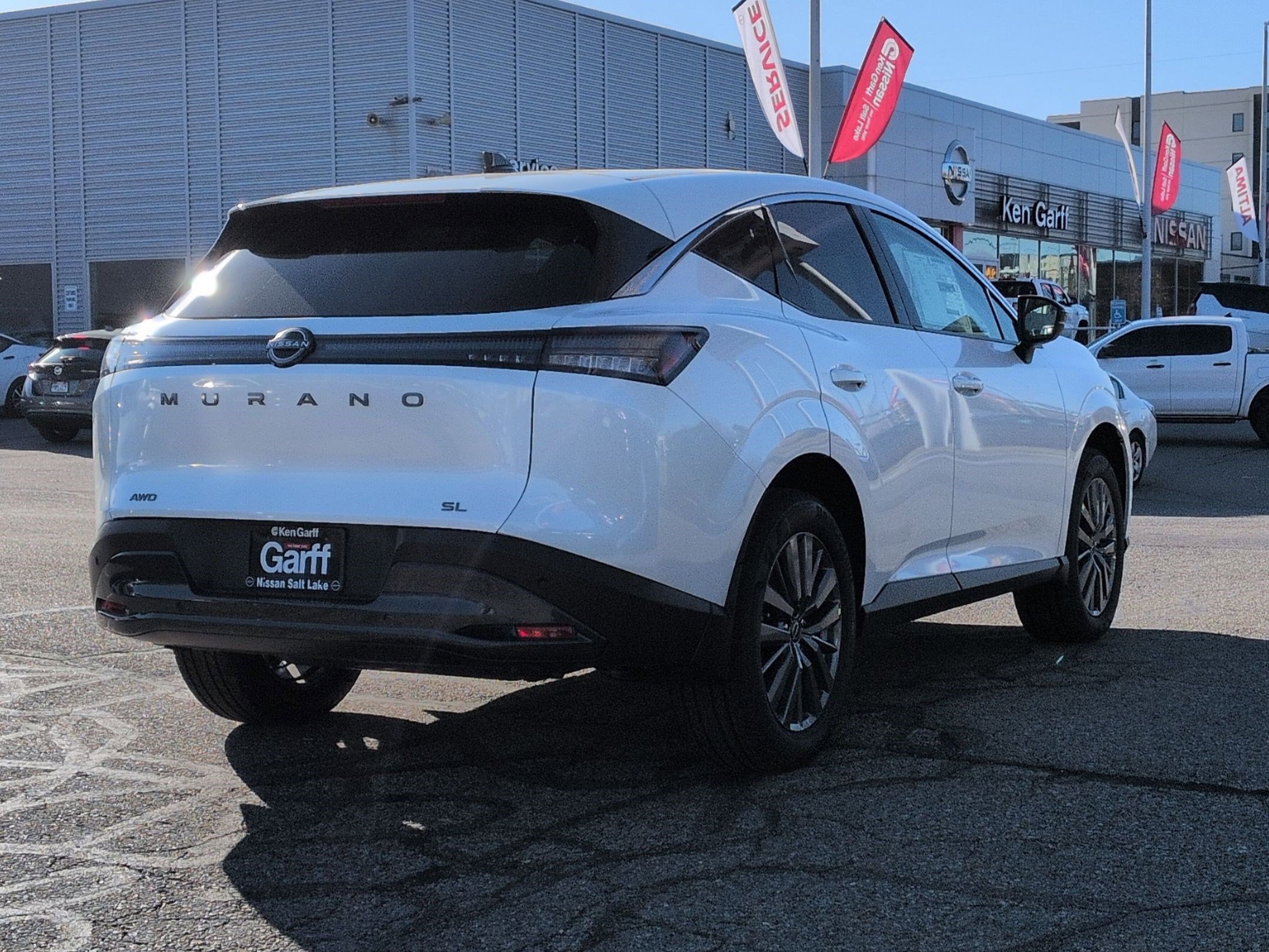 Don't miss the outstanding bargain! Your time is almost up on this wonderful 2026 Nissan Murano Advertised Prices do not include any dealer installed options and advertised prices exclude leases. Priced below KBB Fair Purchase Price! SL AWD I4 9-Speed Automatic 9-Speed Automatic, AWD, 10 Speakers, 4-Wheel Disc Brakes, ABS brakes, Air Conditioning, Alloy wheels, AM/FM radio: SiriusXM w/360L, Auto High-beam Headlights, Auto-dimming Rear-View mirror, Automatic temperature control, Brake assist, Bumpers: body-color, Child-Seat-Sensing Airbag, Compass, Delay-off headlights, Driver door bin, Driver vanity mirror, Dual front impact airbags, Dual front side impact airbags, Electronic Stability Control, Emergency communication system: NissanConnect Services, Four wheel independent suspension, Front anti-roll bar, Front Bucket Seats, Front Center Armrest, Front dual zone A/C, Front reading lights, Fully automatic headlights, Garage door transmitter: myQ Connected Garage, Heated door mirrors, Heated Front Bucket Seats, Heated front seats, Heated steering wheel, Illuminated entry, Knee airbag, Low tire pressure warning, Memory seat, Navigation system: NissanConnect with Navigation and Services, Occupant sensing airbag, Outside temperature display, Overhead airbag, Overhead console, Panic alarm, Passenger door bin, Passenger vanity mirror, Power door mirrors, Power driver seat, Power Liftgate, Power moonroof: Panoramic, Power passenger seat, Power steering, Power windows, Prima-Tex Leatherette Seat Trim with Perforation, Radio data system, Radio: NissanConnect with 4 Hybrid, Rear anti-roll bar, Rear reading lights, Rear seat center armrest, Rear side impact airbag, Rear window defroster, Rear window wiper, Remote keyless entry, Security system, Speed control, Speed-Sensitive Wipers, Split folding rear seat, Spoiler, Steering wheel mounted audio controls, Tachometer, Telescoping steering wheel, Tilt steering wheel, Traction control, Trip computer, Turn signal indicator mirrors, Variably intermittent wipers, Wireless Apple CarPlay/Wireless Android Auto. At Ken Garff Nissan WE LISTEN and We Hear you!! All New Vehicles come with additional Garff Care Protection, Maintenance Plan, Free Service Shuttle, Child Friendly Service and Sales Environment, Pet Friendly, Incredible Selection!! Price includes: $4000 - Nissan Customer Cash. Exp. 03/31/2026.