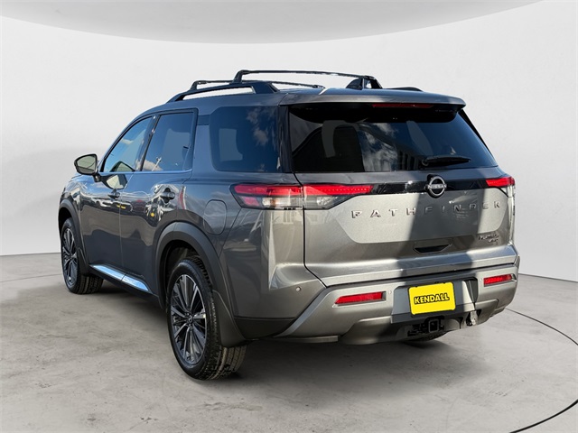 Priced below KBB Fair Purchase Price! 4WD, 13 Speakers, 3rd row seats: bench, 4-Piece Black Splash Guards, 4-Wheel Disc Brakes, ABS brakes, Air Conditioning, Alloy wheels, AM/FM radio: SiriusXM w/360L, Auto High-beam Headlights, Auto tilt-away steering wheel, Auto-dimming Rear-View mirror, Automatic temperature control, Bench Seat Carpeted Floor Mats, Bodyside moldings, Bose Premium Audio System, Brake assist, Bumpers: body-color, Cargo Area Protector, Cargo Net, Cargo Package, Climate Controlled Front Bucket Seats, Cross Bars, Delay-off headlights, Driver door bin, Driver vanity mirror, Dual front impact airbags, Dual front side impact airbags, Electronic Stability Control, Emergency communication system: NissanConnect Services, First Aid, Four wheel independent suspension, Front anti-roll bar, Front Bucket Seats, Front Center Armrest, Front dual zone A/C, Front reading lights, Fully automatic headlights, Garage door transmitter: HomeLink, Heads-Up Display, Heated door mirrors, Heated front seats, Heated rear seats, Heated steering wheel, Illuminated entry, Knee airbag, Low tire pressure warning, Memory seat, Navigation system: NissanConnect with Navigation and Services, NissanConnect featuring Apple CarPlay and Android Auto, Occupant sensing airbag, Outside temperature display, Overhead airbag, Overhead console, Panic alarm, Passenger door bin, Passenger vanity mirror, Power door mirrors, Power driver seat, Power Liftgate, Power moonroof, Power passenger seat, Power steering, Power windows, Radio data system, Radio: AM/FM Audio System with NissanConnect, Rain sensing wipers, Rear air conditioning, Rear anti-roll bar, Rear reading lights, Rear seat center armrest, Rear side impact airbag, Rear window defroster, Rear window wiper, Reclining 3rd row seat, Remote keyless entry, Security system, Semi-Aniline Leather-Appointed Seating Surfaces, Speed control, Speed-sensing steering, Speed-Sensitive Wipers, Split folding rear seat, Spoiler, Steering wheel memory, Steering wheel mounted audio controls, Tachometer, Telescoping steering wheel, Tilt steering wheel, Traction control, Trip computer, Turn signal indicator mirrors, Variably intermittent wipers, Ventilated front seats. Gun Metallic 2026 Nissan Pathfinder Platinum 4WD 9-Speed Automatic 3.5L V6 DOHC. Recent Arrival! Price includes: $2000 - Nissan Customer Cash. Exp. 03/02/2026.