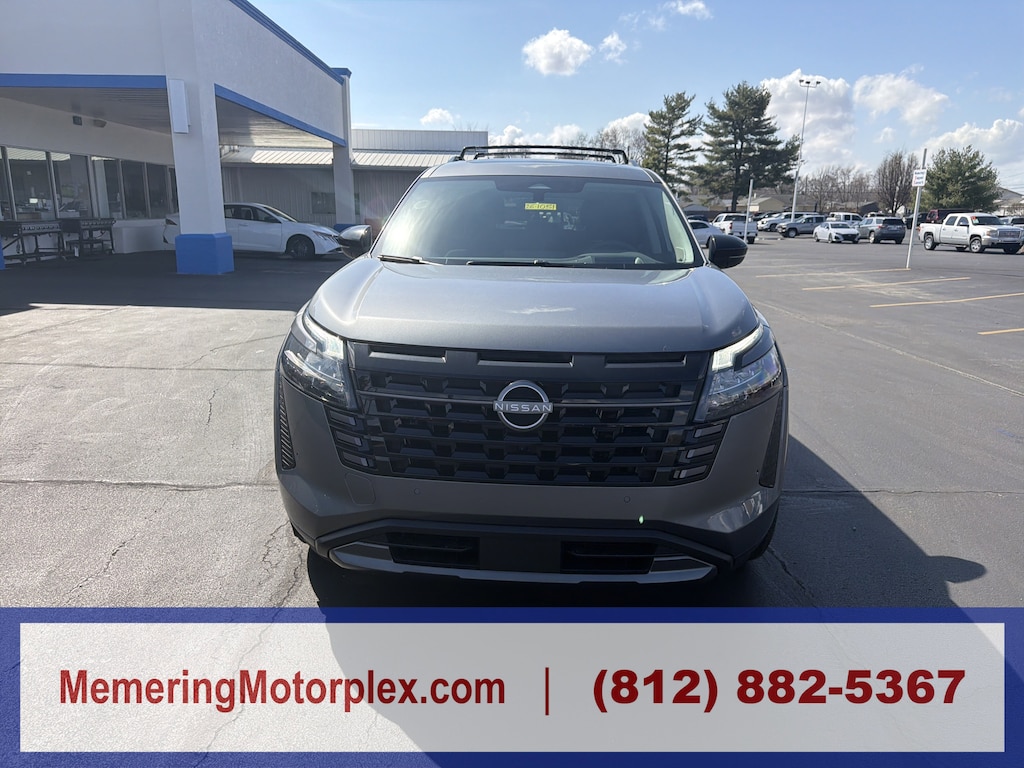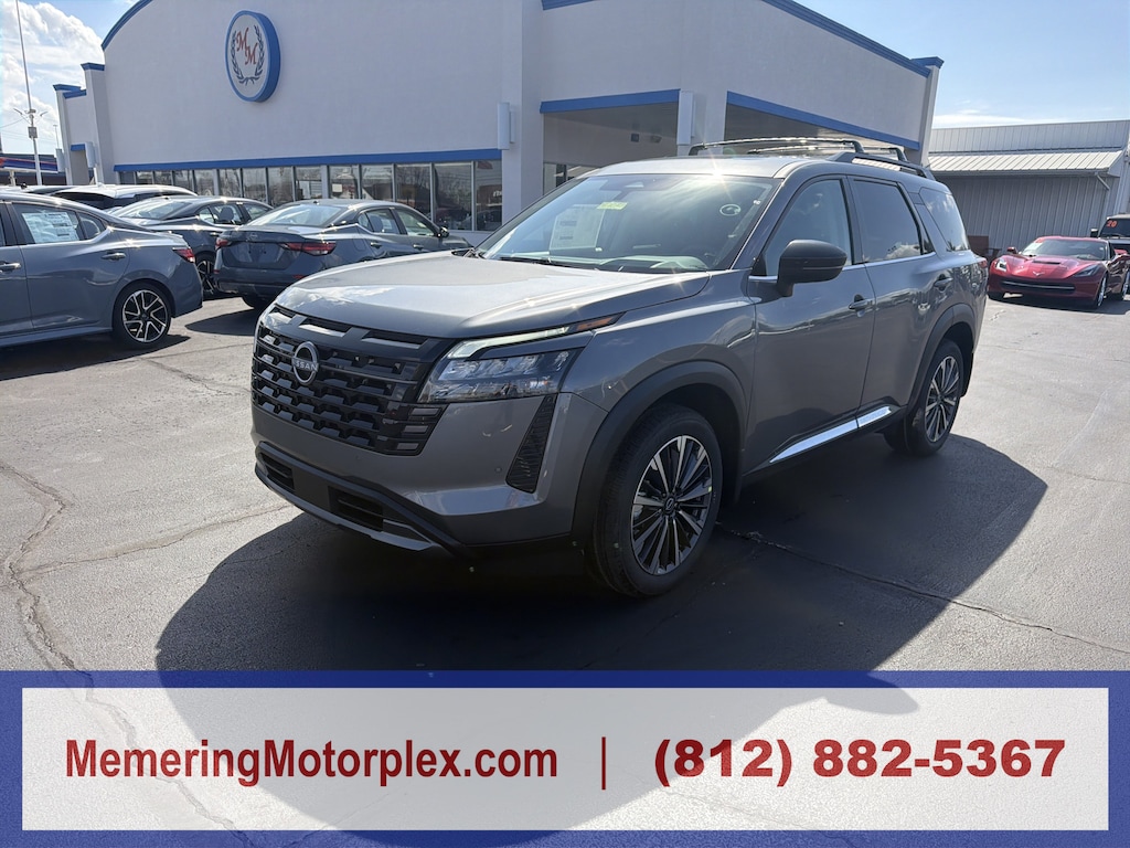 Gun Metallic, [M92] Cargo Package -inc: dividers and console net, Cargo Area Protector, Cargo Net, First Aid, [L92] Bench Seat Carpeted Floor Mats -inc: carpeted cargo area protector, [B92] Cross Bars, [B10] 4-Piece Black Splash Guards -inc: In plant installation, Wireless Phone Connectivity, Window Grid And Fixed Antenna, Wheels: 20 Machined Alloy -inc: dark metallic gray finish, (Type A), Vehicle Dynamic Control (VDC) Electronic Stability Control (ESC), Valet Function. This Nissan Pathfinder has a strong Regular Unleaded V-6 3.5 L/213 engine powering this automatic transmission. Visit us today. Test drive this must-see, must-drive, must-own beauty today at Memering Motorplex, 1949 Hart St, Vincennes, IN 47591. Memering Motorplex is dedicated to your satisfaction before, during, and after your purchase. We'll go the extra mile to take care of you.