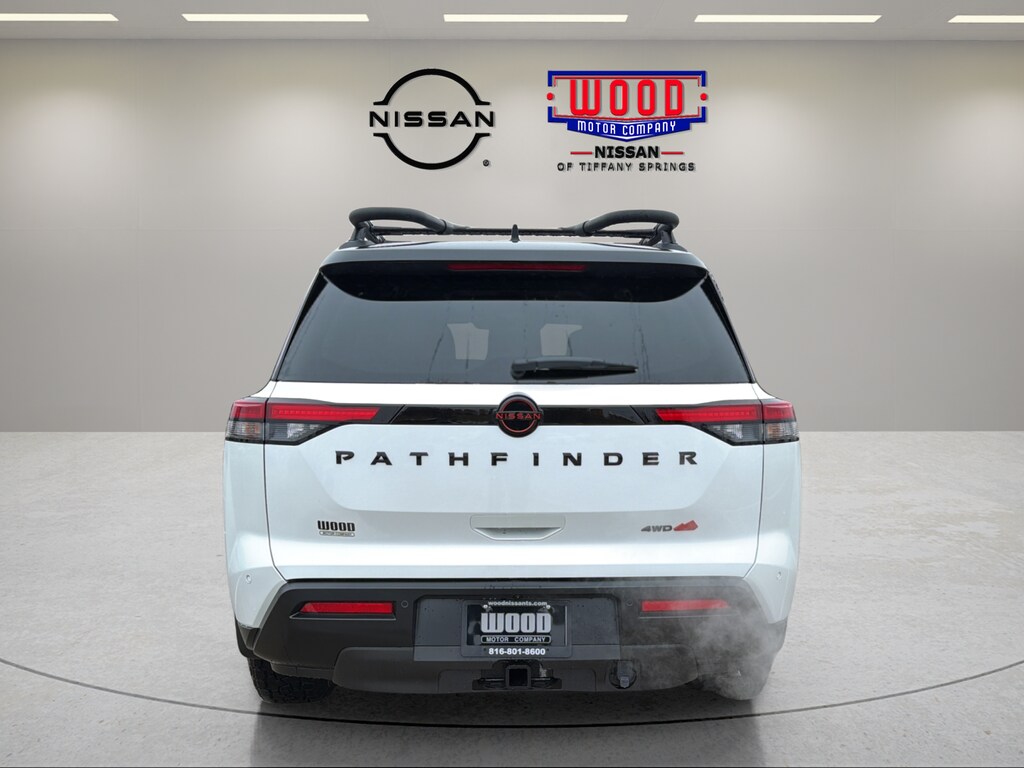 Everest White Pearl/Black 2026 Nissan Pathfinder Rock Creek 4D Sport Utility 4WD 9-Speed Automatic 3.5L V6 DOHC 4WD. Wood Nissan of Tiffany Springs is Kansas City’s premier destination for all new and used vehicles, delivering unmatched value, trust, and long-term peace of mind. Every vehicle—new or pre-owned—comes with WoodCare, our commitment to making every customer a lifetime customer. Enjoy the confidence of our Lifetime Warranty and Free Maintenance on all new and used vehicles, giving you protection and savings long after you drive off the lot. Conveniently located in Tiffany Springs, we offer a huge selection, competitive pricing, and a customer-first experience backed by factory-trained technicians and a dedicated team that puts your needs first. When you choose Wood Nissan of Tiffany Springs, you’re not just buying a car—you’re gaining a dealership for life.