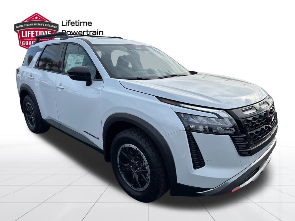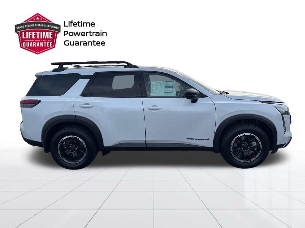 Everest White Pearl Tricoat 2026 Nissan Pathfinder Rock Creek 4WD 9-Speed Automatic 3.5L V6 DOHC. Grand Strand Nissan has been serving our local community under the same ownership since 1994 and several of our current staff members and managers have been with us since 1998. Because of this feat, we have a long-running commitment to every customer that walks through our doors. We want to ensure you have a fantastic experience at our dealership that's unlike any other you've had before. Our goal is to provide the same rich, satisfying experience online that you will receive in our dealership. We pride ourselves in delivering better customer service and we guarantee you won't find a better deal anywhere. At Grand Strand Nissan you don't have to worry about gimmicks or hidden costs. PLEASE contact our Internet Sales Team for a professional, no pressure purchase experience or stop by and check out the great selection in person. Thank you for shopping Grand Strand Nissan.