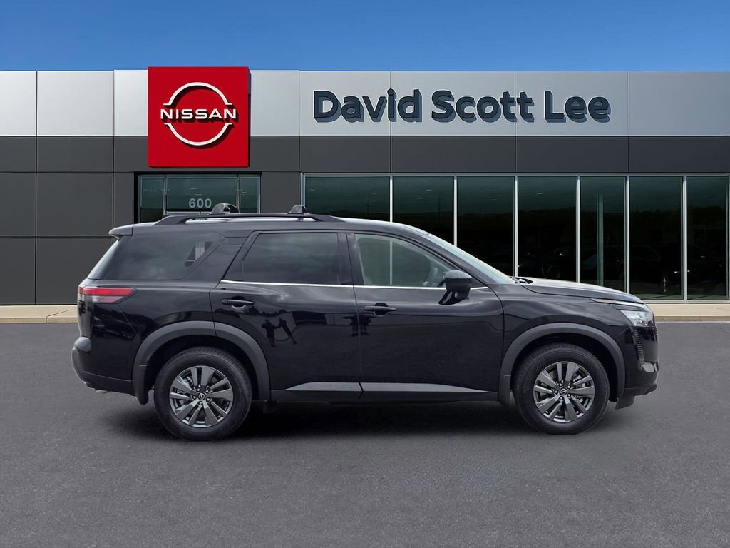 Super Black 2026 Nissan Pathfinder SV FWD 9-Speed Automatic 3.5L V6 DOHC 18" Painted Alloy Wheels, 3rd row seats: bench, 4-Piece Black Splash Guards, 4-Wheel Disc Brakes, 6 Speakers, ABS brakes, Air Conditioning, Alloy wheels, AM/FM radio: SiriusXM w/360L, Auto High-beam Headlights, Automatic temperature control, Bench Seat Carpeted Floor Mats, Brake assist, Bumpers: body-color, Cloth Seating Surfaces, Cross Bars, Delay-off headlights, Driver door bin, Driver vanity mirror, Dual front impact airbags, Dual front side impact airbags, Electronic Stability Control, Emergency communication system: NissanConnect Services, Four wheel independent suspension, Front anti-roll bar, Front Bucket Seats, Front Center Armrest, Front dual zone A/C, Front reading lights, Fully automatic headlights, Garage door transmitter: myQ Connected Garage, Heated door mirrors, Heated Front Bucket Seats, Heated front seats, Illuminated entry, Knee airbag, Low tire pressure warning, NissanConnect featuring Apple CarPlay and Android Auto, Occupant sensing airbag, Outside temperature display, Overhead airbag, Overhead console, Panic alarm, Passenger door bin, Passenger vanity mirror, Power door mirrors, Power driver seat, Power Liftgate. Price includes $2000 - Nissan Customer Cash. Exp. 03/02/2026.