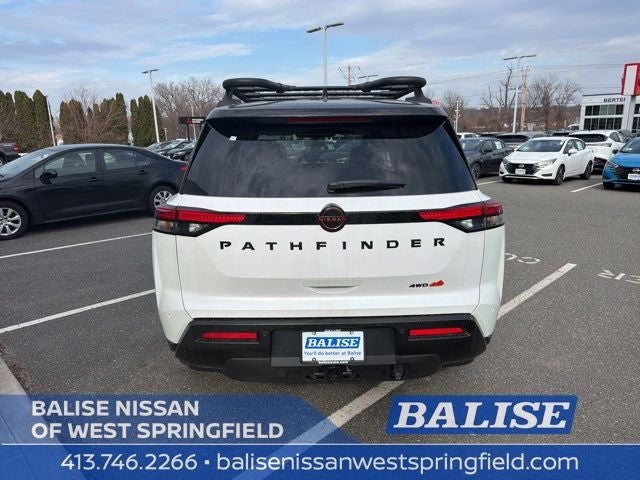 Everest White Pearl/Black 2026 Nissan Pathfinder SV ROCK CREEK 4WD 9-Speed Automatic 3.5L V6 DOHC Pathfinder SV ROCK CREEK, 4D Sport Utility, 3.5L V6 DOHC, 9-Speed Automatic, 4WD, Everest White Pearl/Black, Charcoal Cloth, ABS brakes, Active Cruise Control, Alloy wheels, Electronic Stability Control, Front dual zone A/C, Heated door mirrors, Heated Front Bucket Seats, Heated front seats, Illuminated entry, Low tire pressure warning, Power Liftgate, Remote keyless entry, Traction control. Recent Arrival! 21/27 City/Highway MPG
