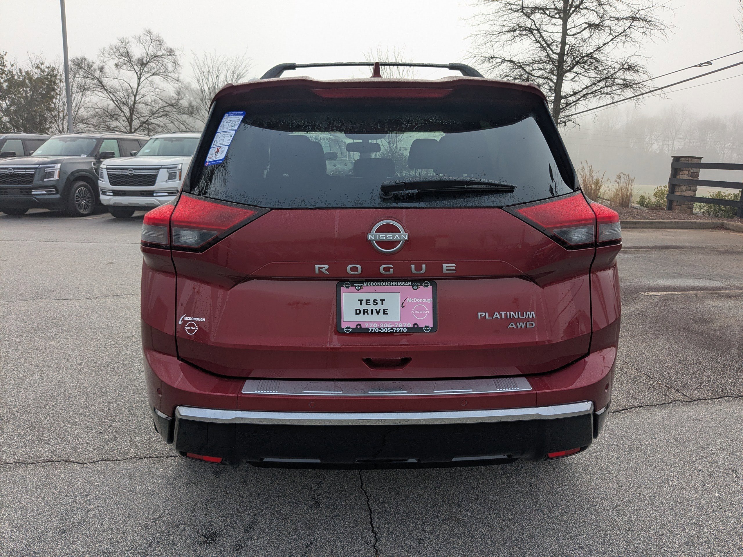 Customer must present copy of this advertisement to Dealer in order to receive the advertised price. Check out all these great options Platinum Premium Package (Head-Up Display, Heated Rear Seats, Motion-Activated Power Liftgate, and Tri-Zone Automatic Temperature Control), AWD, 10 Speakers, 4-Wheel Disc Brakes, ABS brakes, Air Conditioning, Alloy wheels, AM/FM radio: SiriusXM w/360L, Auto High-beam Headlights, Auto-dimming Rear-View mirror, Automatic temperature control, Black Splash Guards (set of 4), Bose Premium Audio System, Brake assist, Bumpers: body-color, Chrome Rear Bumper Protector, Delay-off headlights, Driver door bin, Driver vanity mirror, Dual front impact airbags, Dual front side impact airbags, Electronic Stability Control, Emergency communication system: NissanConnect Services, First Aid Kit, Floor Mats with 2-Piece Cargo Area Protector, Four wheel independent suspension, Front anti-roll bar, Front Bucket Seats, Front Center Armrest, Front dual zone A/C, Front reading lights, Fully automatic headlights, Garage door transmitter: myQ Connected Garage, Heads-Up Display, Heated door mirrors, Heated Front Bucket Seats, Heated front seats, Heated steering wheel, Illuminated entry, Knee airbag, Low tire pressure warning, Memory seat, Navigation system: Google Maps, Occupant sensing airbag, Outside temperature display, Overhead airbag, Overhead console, Panic alarm, Passenger door bin, Passenger vanity mirror, Power door mirrors, Power driver seat, Power Liftgate, Power moonroof, Power passenger seat, Power steering, Power windows, Premium Paint, Quilted Semi-Aniline Leather-Appointed Seat Trim, Radio data system, Radio: AM/FM NissanConnect with Navigation, Rear anti-roll bar, Rear reading lights, Rear seat center armrest, Rear side impact airbag, Rear window defroster, Rear window wiper, Remote keyless entry, Roof Rail Cross Bars, Security system, Speed control, Speed-sensing steering, Speed-Sensitive Wipers, Split folding rear seat, Spoiler, Steering wheel mounted audio controls, Tachometer, Telescoping steering wheel, Tilt steering wheel, Traction control, Trip computer, Turn signal indicator mirrors, Variably intermittent wipers, Wheels: 19" Unique Dark Painted Aluminum Alloy, and Wireless Apple CarPlay/Wireless Android Auto. Scarlet 2026 Nissan Rogue Platinum AWD CVT with Xtronic 1.5L DOHC AWD.