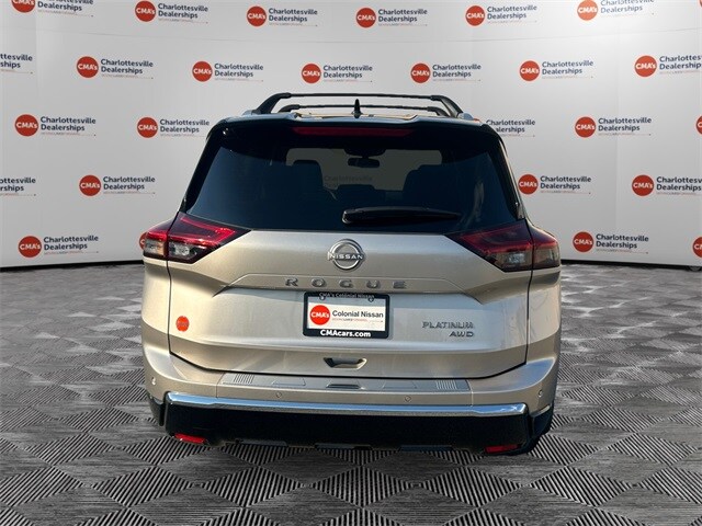 Champagne Silver/Black 2026 Nissan Rogue Platinum AWD CVT with Xtronic 1.5L DOHC AWD, 10 Speakers, 4-Wheel Disc Brakes, ABS brakes, Air Conditioning, Alloy wheels, AM/FM radio: SiriusXM w/360L, Auto High-beam Headlights, Auto-dimming Rear-View mirror, Automatic temperature control, Black Splash Guards (set of 4), Bose Premium Audio System, Brake assist, Bumpers: body-color, Chrome Rear Bumper Protector, Delay-off headlights, Driver door bin, Driver vanity mirror, Dual front impact airbags, Dual front side impact airbags, Electronic Stability Control, Emergency communication system: NissanConnect Services, Floor Mats with 2-Piece Cargo Area Protector, Four wheel independent suspension, Front anti-roll bar, Front Bucket Seats, Front Center Armrest, Front dual zone A/C, Front reading lights, Fully automatic headlights, Garage door transmitter: myQ Connected Garage, Head-Up Display, Heads-Up Display, Heated door mirrors, Heated Front Bucket Seats, Heated front seats, Heated Rear Seats, Heated steering wheel, Illuminated entry, Knee airbag, Low tire pressure warning, Memory seat, Motion-Activated Power Liftgate, Navigation system: Google Maps, Occupant sensing airbag, Outside temperature display, Overhead airbag, Overhead console, Panic alarm, Passenger door bin, Passenger vanity mirror, Platinum Premium Package, Power door mirrors, Power driver seat, Power Liftgate, Power moonroof, Power passenger seat, Power steering, Power windows, Quilted Semi-Aniline Leather-Appointed Seat Trim, Radio data system, Radio: AM/FM NissanConnect with Navigation, Rear anti-roll bar, Rear reading lights, Rear seat center armrest, Rear side impact airbag, Rear window defroster, Rear window wiper, Remote keyless entry, Roof Rail Cross Bars, Security system, Speed control, Speed-sensing steering, Speed-Sensitive Wipers, Split folding rear seat, Spoiler, Steering wheel mounted audio controls, Tachometer, Telescoping steering wheel, Tilt steering wheel, Traction control, Tri-Zone Automatic Temperature Control, Trip computer, Turn signal indicator mirrors, Variably intermittent wipers, Wheels: 19" Unique Dark Painted Aluminum Alloy.