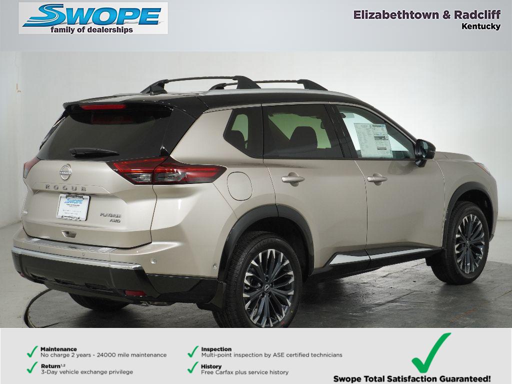 Welcome to Swope Nissan. The 2026 Nissan Rogue Platinum AWD is a standout SUV that offers premium performance and style at an exceptional value. Powered by a fuel-efficient 3-cylinder, 1.5L gasoline engine paired with all-wheel drive, this Nissan Rogue delivers confident handling, impressive fuel economy, and quiet refinement for daily commutes or weekend escapes. Step inside to luxurious leather seats and an impeccably appointed interior crafted for comfort and convenience. Technology-forward features include Apple CarPlay, Hands-Free Bluetooth, and seamless connectivity to keep you entertained and safe on the road. Remote Start adds climate-controlled comfort before you get in, while the Heated Steering Wheel keeps hands warm on chilly mornings. Safety and driver assistance systems surround you, enhancing confidence behind the wheel, while intelligent cargo solutions and flexible seating make this Nissan Rogue Platinum versatile for family life or adventure. With its sophisticated exterior design, premium trim, and attention to detail, this AWD Nissan Rogue stands out in both performance and presence. Located in Elizabethtown, KY, this 2026 Nissan Rogue Platinum offers the best price around — a rare combination of premium features and unbeatable value. Whether you prioritize efficiency, technology, or upscale comfort, this Nissan Rogue delivers. Contact us today to schedule a test drive and experience why this Nissan Rogue Platinum is the smart choice for drivers seeking value and capability.
