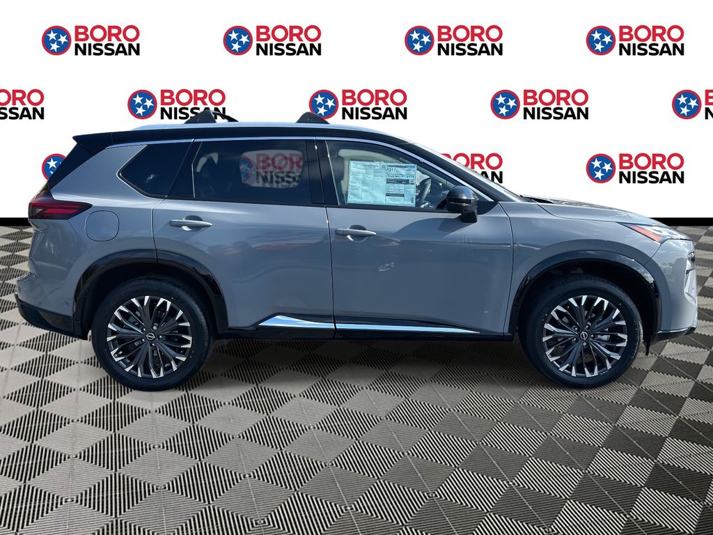 Boulder Gray/Super Black 2026 Nissan Rogue Platinum AWD CVT with Xtronic 1.5L DOHC Apple Android CarPlay, rear backup camera, Bluetooth, AWD, 10 speakers, 4-wheel disc brakes, air conditioning, alloy wheels, AM/FM radio: SiriusXM w/360L, auto high-beam headlights, auto-dimming rear-view mirror, automatic temperature control, Bose premium audio system, brake assist, bumpers: body-color, chrome rear bumper protector, delay-off headlights, driver door bin, driver vanity mirror, dual front impact airbags, dual front side impact airbags, electronic stability control, emergency communication system: NissanConnect Services, first aid kit, floor mats with 2-piece cargo area protector, four wheel independent suspension, front anti-roll bar, front bucket seats, front center armrest, front dual zone A/C, front reading lights, fully automatic headlights, garage door transmitter: myQ Connected Garage, head-up display, heads-up display, heated door mirrors, heated front bucket seats, heated front seats, heated rear seats, heated steering wheel, illuminated entry, knee airbag, low tire pressure warning, memory seat, motion-activated power liftgate, navigation system: Google Maps, occupant sensing airbag, outside temperature display, overhead airbag, overhead console, panic alarm, passenger door bin, passenger vanity mirror, Platinum Premium Package, power door mirrors, power driver seat, power liftgate, power moonroof, power passenger seat, power steering, power windows, premium paint with two-tone, quilted semi-aniline leather-appointed seat trim, radio data system, radio: AM/FM NissanConnect with Navigation, rear anti-roll bar, rear reading lights, rear seat center armrest, rear side impact airbag, rear window defroster, rear window wiper, remote keyless entry, roof rail cross bars, security system, speed control, speed-sensing steering, speed-sensitive wipers, split folding rear seat, spoiler, steering wheel mounted audio controls, tachometer, telescoping steering wheel, tilt steering wheel, traction control, tri-zone automatic temperature control, trip computer, turn signal indicator mirrors.