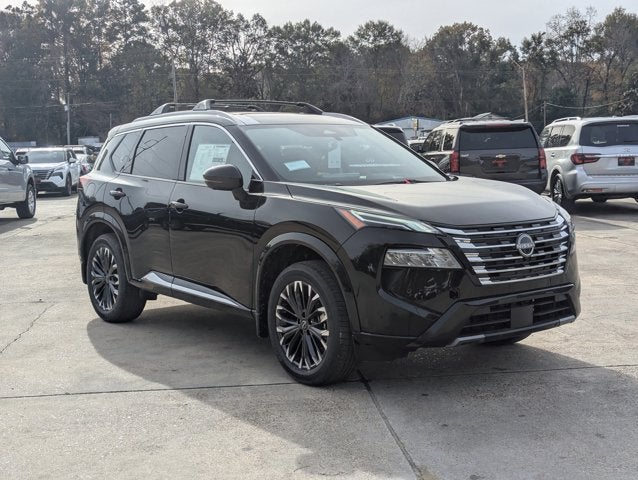 The 2026 Nissan Rogue Platinum in Super Black with a Chestnut interior is in stock at Natchez Nissan. This sport utility vehicle features a turbocharged 1.5L 3-cylinder engine, all-wheel drive, and a host of premium amenities. Please see the dealer for more details.