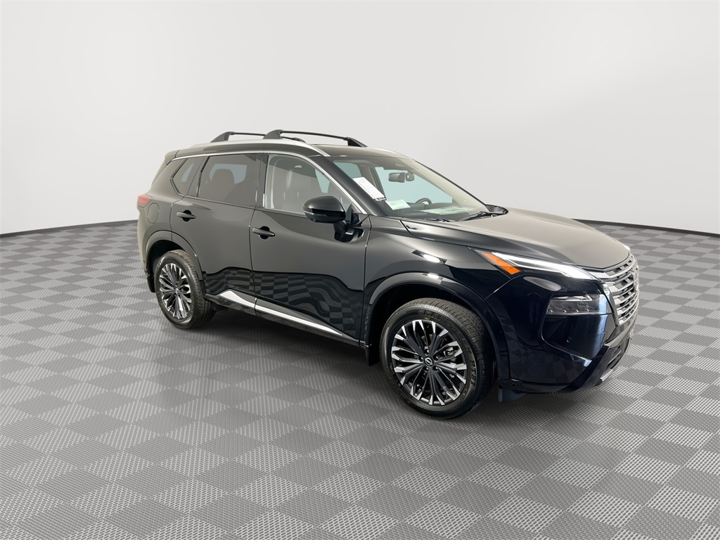 Super Black 2026 Nissan Rogue Platinum AWD CVT with Xtronic 1.5L DOHC Rogue Platinum, 4D Sport Utility, 1.5L DOHC, CVT with Xtronic, AWD, Super Black, Charcoal Leather. 28/35 City/Highway MPG