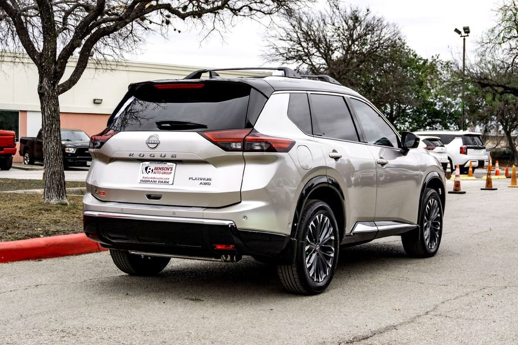 2026 Nissan Rogue Platinum AWD. Platinum Premium Package (Head-Up Display, Heated Rear Seats, Motion-Activated Power Liftgate, and Tri-Zone Automatic Temperature Control), AWD, 10 Speakers, 4-Wheel Disc Brakes, ABS brakes, Air Conditioning, Alloy wheels, AM/FM radio: SiriusXM w/360L, Auto High-beam Headlights, Auto-dimming Rear-View mirror, Automatic temperature control, Black Splash Guards (set of 4), Bose Premium Audio System, Brake assist, Bumpers: body-color, Chrome Rear Bumper Protector, Delay-off headlights, Driver door bin, Driver vanity mirror, Dual front impact airbags, Dual front side impact airbags, Electronic Stability Control, Emergency communication system: NissanConnect Services, First Aid Kit, Floor Mats with 2-Piece Cargo Area Protector, Four wheel independent suspension, Front anti-roll bar, Front Bucket Seats, Front Center Armrest, Front dual zone A/C, Front reading lights, Fully automatic headlights, Garage door transmitter: myQ Connected Garage, Heads-Up Display, Heated door mirrors, Heated Front Bucket Seats, Heated front seats, Heated steering wheel, Illuminated entry, Knee airbag, Low tire pressure warning, Memory seat, Navigation system: Google Maps, Occupant sensing airbag, Outside temperature display, Overhead airbag, Overhead console, Panic alarm, Passenger door bin, Passenger vanity mirror, Power door mirrors, Power driver seat, Power Liftgate, Power moonroof, Power passenger seat, Power steering, Power windows, Quilted Semi-Aniline Leather-Appointed Seat Trim, Radio data system, Radio: AM/FM NissanConnect with Navigation, Rear anti-roll bar, Rear reading lights, Rear seat center armrest, Rear side impact airbag, Rear window defroster, Rear window wiper, Remote keyless entry, Roof Rail Cross Bars, Security system, Speed control, Speed-sensing steering, Speed-Sensitive Wipers, Split folding rear seat, Spoiler, Steering wheel mounted audio controls, Tachometer, Telescoping steering wheel, Tilt steering wheel, Traction control, Trip computer, Turn signal indicator mirrors, Variably intermittent wipers, Wheels: 19" Unique Dark Painted Aluminum Alloy, and Wireless Apple CarPlay/Wireless Android. 28/35 City/Highway MPG.