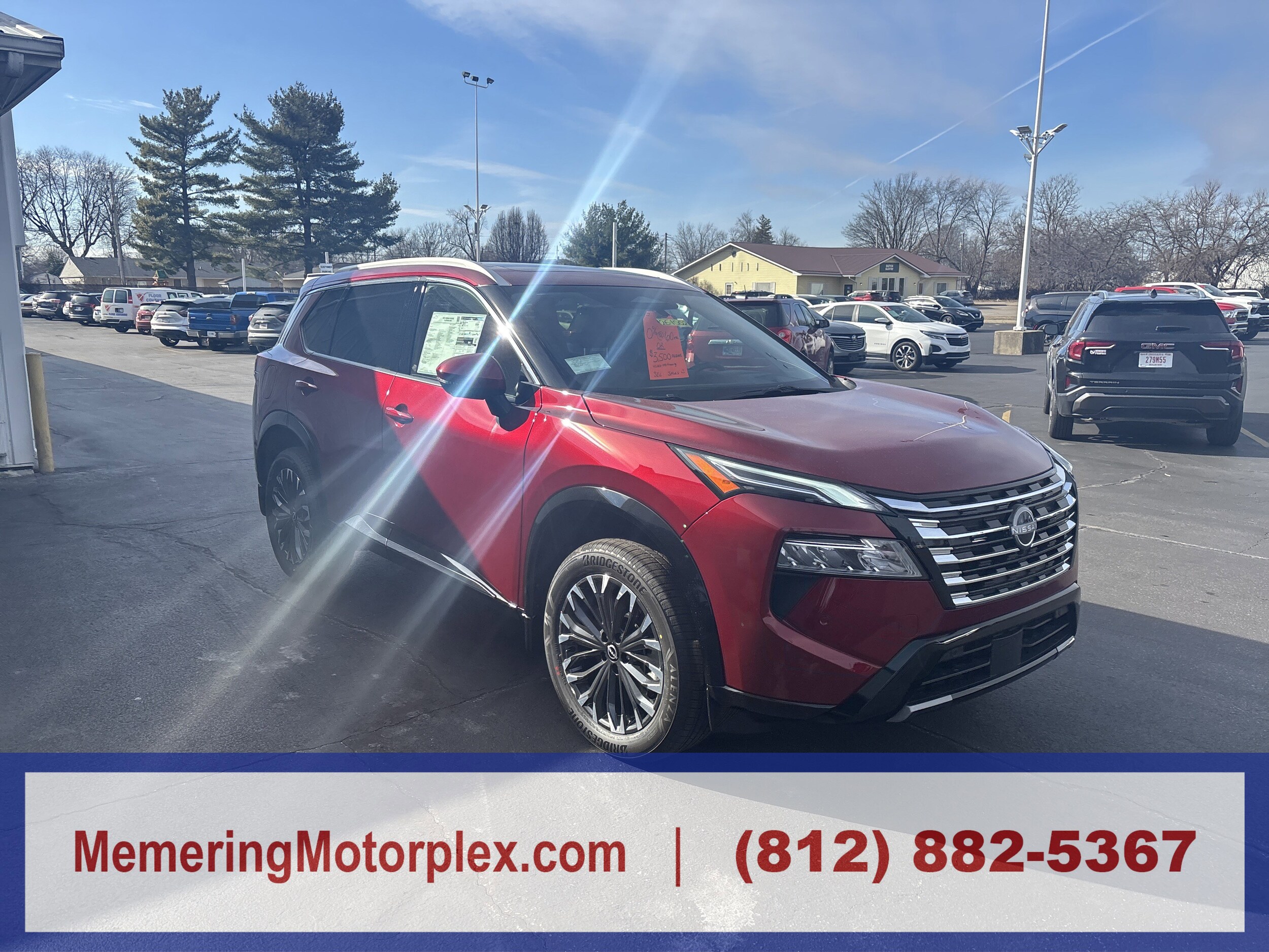 Scarlet Ember Tintcoat, Chestnut, quilted semi-aniline leather-appointed seat trim -inc: perforated, Platinum Premium Package -inc: heated rear seats, motion-activated power liftgate, tri-zone automatic temperature control, head-up display, illuminated kick plates, floor mats with 2-piece cargo area protector, First Aid Kit, Tech Package -inc: ProPILOT Assist 2.1, driver monitor, 3D Enhanced Intelligent Around View Monitor, full 3D rotation, front wide view and invisible hood view, driver distraction warning, Rain-Sensing Wipers, premium paint, chrome rear bumper protector, black splash guards (set of 4), wireless phone connectivity. This Nissan Rogue has a dependable intercooled turbo regular unleaded I-3 1.5 L/91 engine powering this variable transmission.