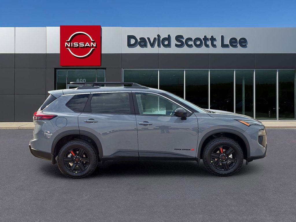 Boulder Gray Pearl 2026 Nissan Rogue Rock Creek AWD CVT with Xtronic 1.5L DOHC AWD, 4-Wheel Disc Brakes, 6 Speakers, ABS brakes, Air Conditioning, Alloy wheels, AM/FM radio: Sirius, Apple CarPlay/Android Auto, Auto High-beam Headlights, Automatic temperature control, Black Splash Guards (set of 4), Brake assist, Delay-off headlights, Driver door bin, Driver vanity mirror, Dual front impact airbags, Dual front side impact airbags, Electronic Stability Control, Emergency communication system: NissanConnect Services, Four wheel independent suspension, Frameless Rearview Mirror with Universal Remote, Front anti-roll bar, Front Bucket Seats, Front Center Armrest, Front dual zone A/C, Front reading lights, Fully automatic headlights, Heated door mirrors, Illuminated entry, Knee airbag, Low tire pressure warning, Occupant sensing airbag, Outside temperature display, Overhead airbag, Overhead console, Panic alarm, Passenger door bin, Passenger vanity mirror, Power door mirrors, Power driver seat, Power Liftgate, Power steering, Power windows, Premium Paint, Radio data system, Radio: AM/FM NissanConnect, Rear anti-roll bar, Rear seat center armrest, Rear side impact airbag, Rear window defroster, Rear window wiper, Remote keyless entry.