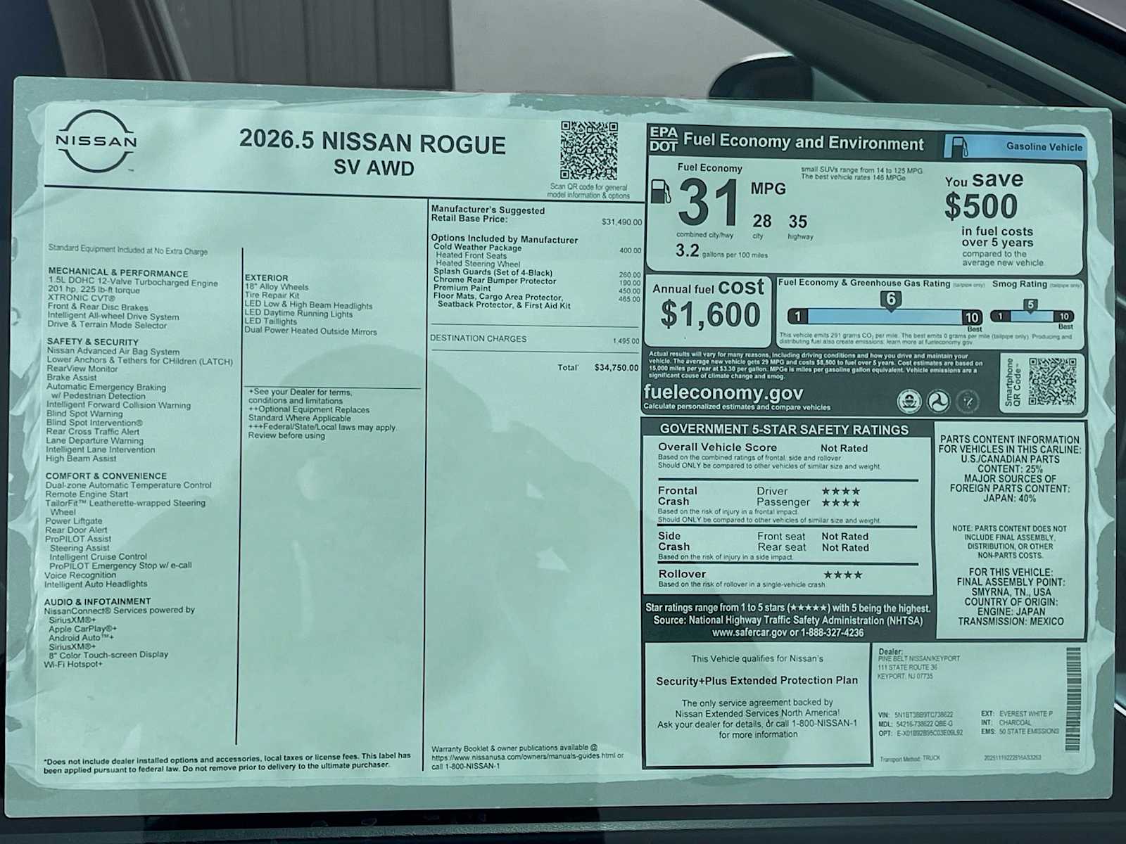 Heated Seats, Satellite Radio, Power Liftgate, All Wheel Drive, Turbo Charged Engine, Aluminum Wheels, [X01] Cold Weather Package. EPA 35 MPG Hwy/28 MPG City! Everest White Pearl Tricoat exterior and Charcoal interior, SV trim. Nissan SV with Everest White Pearl Tricoat exterior and Charcoal interior features a 3 Cylinder Engine with 201 HP at 5600 RPM. Horsepower calculations based on trim engine configuration. Fuel economy calculations based on original manufacturer data for trim engine configuration.