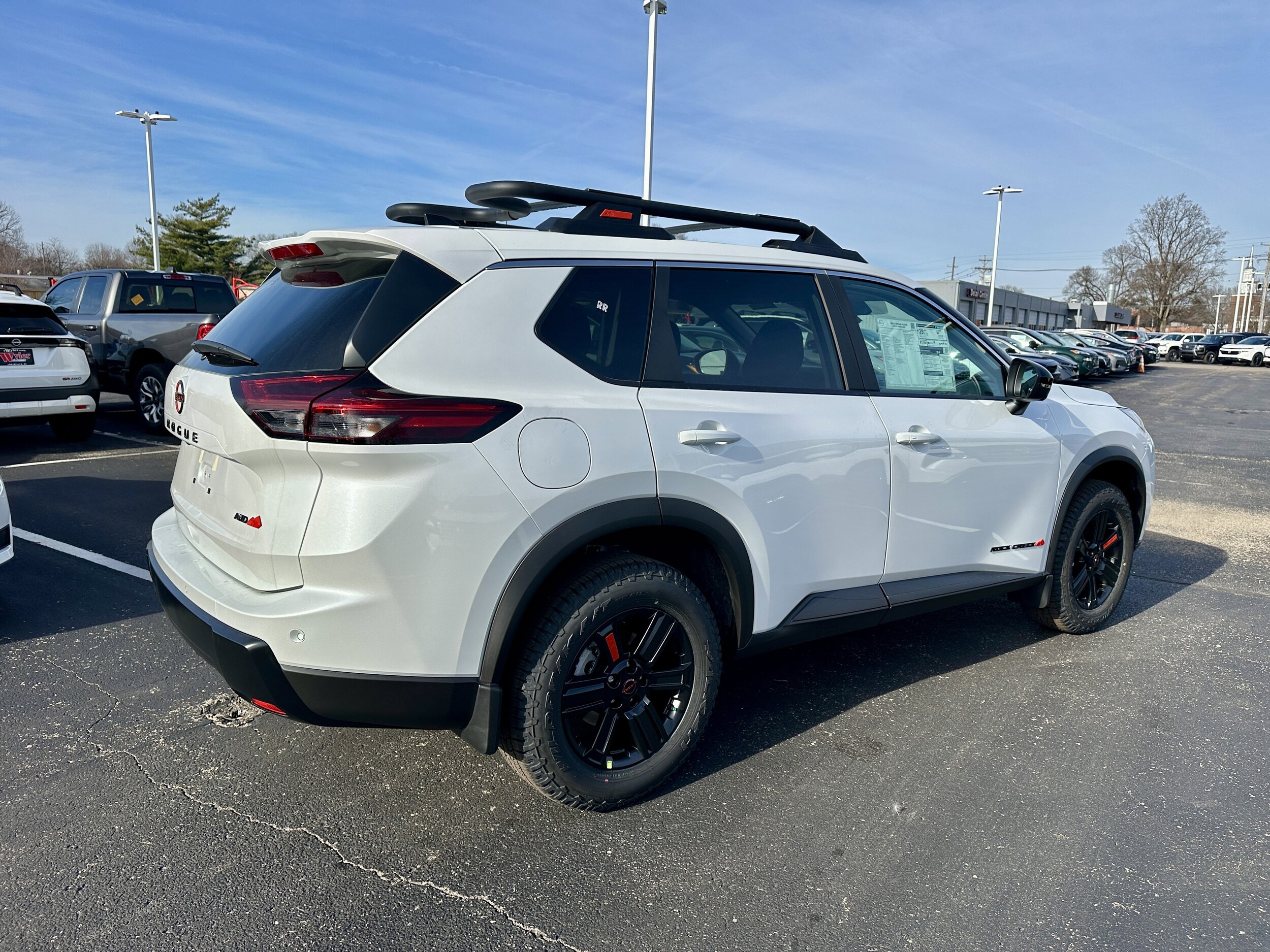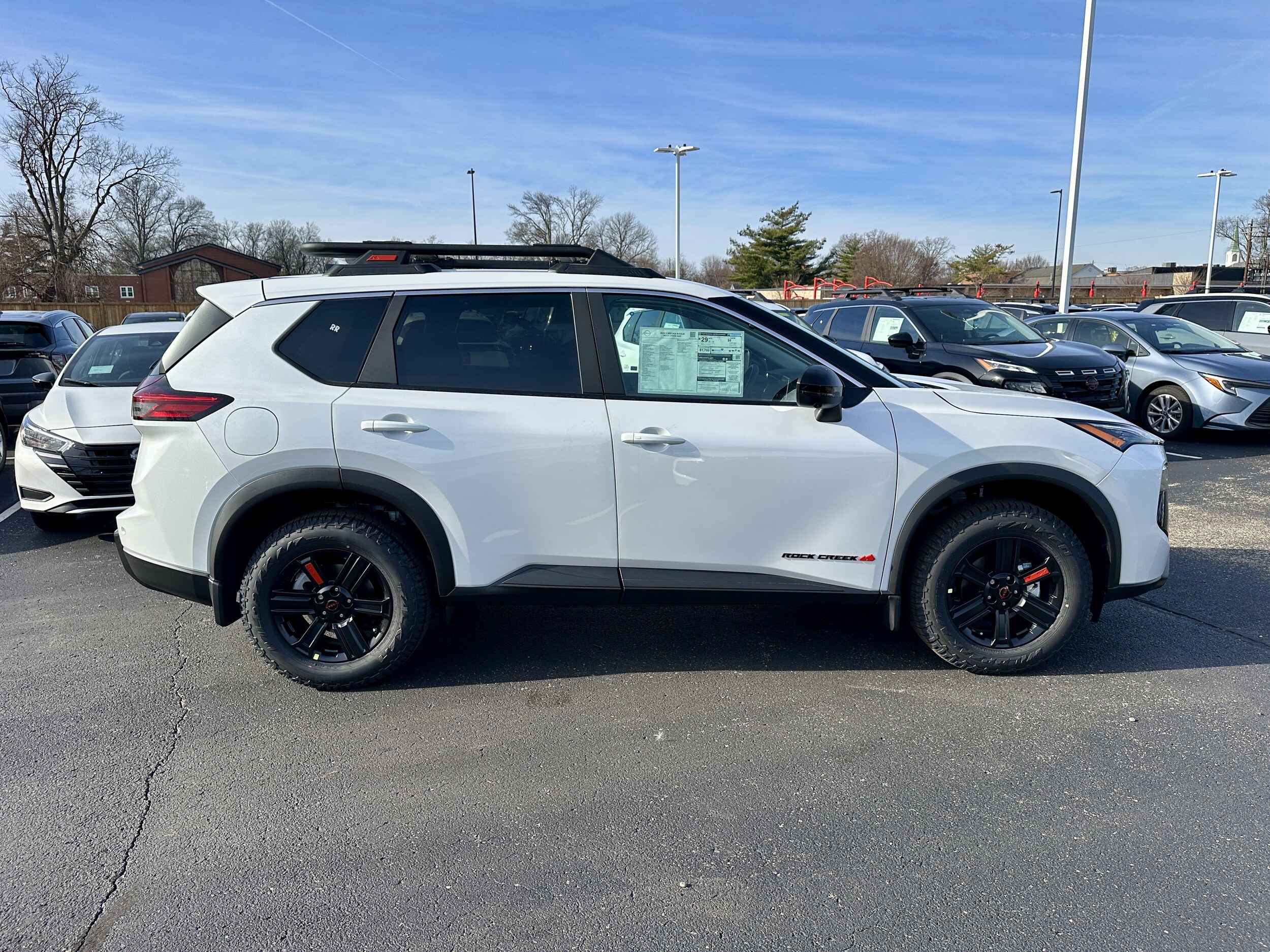 $6,159 off MSRP! Jeff Wyler Kings Nissan is excited to offer this charming 2026 Nissan Rogue Rock Creek in Everest White Pearl Tricoat. Well equipped with: Rock Creek Premium Package (4-Way Power Passenger Seat, Auto-Dimming Inside Mirror, Heated Steering Wheel, Interior LED Accent Lighting, Memory Driver Seat and Outside Mirrors, Motion-Activated Power Liftgate, Reverse Tilt-Down Outside Mirrors, and Wireless Charging Pad), AWD, 4-Wheel Disc Brakes, 6 Speakers, ABS brakes, Air Conditioning, Alloy wheels, AM/FM radio, Apple CarPlay/Android Auto, Auto High-beam Headlights, Automatic temperature control, Brake assist, Delay-off headlights, Driver door bin, Driver vanity mirror, Dual front impact airbags, Dual front side impact airbags, Electronic Stability Control, Emergency communication system: NissanConnect Services, Four wheel independent suspension, Front anti-roll bar, Front Bucket Seats, Front Center Armrest, Front dual zone A/C, Front reading lights, Fully automatic headlights, Heated door mirrors, Heated Front Bucket Seats, Heated front seats, Illuminated entry, Knee airbag, Leatherette and Ballistic Nylon Seating, Low tire pressure warning, Occupant sensing airbag, Outside temperature display, Overhead airbag, Overhead console, Panic alarm, Passenger door bin, Passenger vanity mirror, Power door mirrors, Power driver seat, Power Liftgate, Power steering, Power windows, Premium Paint, Radio data system, Radio: AM/FM NissanConnect, Rear anti-roll bar, Rear Parking Sensors, Rear seat center armrest, Rear side impact airbag, Rear window defroster, Rear window wiper, Remote keyless entry, Retractable Cargo Cover, Roof rack, Speed control, Speed-sensing steering, Speed-Sensitive Wipers, Split folding rear seat, Spoiler, Steering wheel mounted audio controls, Tachometer, Telescoping steering wheel, Tilt steering wheel, Traction control, Trip computer, Variably intermittent wipers, and Wheels: 17" Dark Painted Alloy. 27/32 City/Highway MPG. Wyler Family First Package Includes: NanoCure Appearance Protection: Exterior & Interior Chemical Sealant Applied to Protect Against Environmental Hazards (7 Year Warranty Coverage). Pulse- Rear end Collision Avoidance System Theft Deterrent Strategy gives you 5 Years of Coverage against vehicle Theft, Offering up to a $5,000 benefit. Used vehicles 10 years of age or newer with less than 100,000 miles are eligible for the Wyler Assurance Program, but eligible vehicles must pass our reconditioning process and multi-point inspection. Provided the vehicle passes inspection, vehicles will be eligible for the 6 month/6,000 mile limited warranty. The 6 month/6,000 mile limited warranty is NOT available on AS-IS vehicles, wholesale vehicles, lease buyback/pass-thru vehicles or un-inspected vehicles. Note that this program can also apply to vehicles where the remaining factory coverage is less than 6 months or 6,000 miles. Please check the Federal Trade Commission (FTC) Buyers guide on the vehicle for full details as to whether or not warranty coverage may apply. Contact Dealer for additional details. The Wyler Assurance 6 month/6,000 Mile limited warranty ends 6 months from the date of the Retail Purchase Agreement (BUYERS ORDER) or when the vehicle's odometer registers 6,000 additional miles to the mileage listed on the BUYERS ORDER, whichever comes first. Your Deductible - The warranty holder on your contract pays the first $100 of each covered repair.