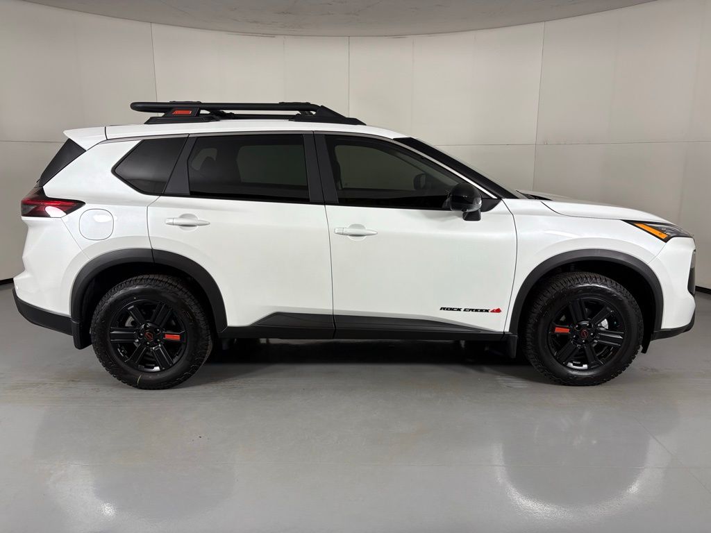 Sales price is plus tax, title, license, and $599 Doc fee, and dealer installed accessories. All New & Used Courtesy vehicles come pre-equipped with Lifetime Window Tint for $499, providing 99% UV protection and long-term interior preservation. 360Shield Ceramic Coating is included for $399, offering durable exterior and interior protection. The CarRx GPS App adds connected driving and theft protection for $399, and Door Edge & Handle Cup Protection helps maintain a like-new appearance for $299. Nitrogen for Life is included, and trucks feature a Spray-In Bedliner for $995 when applicable. Everest White Pearl Tricoat 2026 Nissan Rogue Rock Creek AWD CVT with Xtronic 1.5L DOHC This Nissan Rogue is equipped with the following features: AWD, 4-Wheel Disc Brakes, 6 Speakers, ABS brakes, Air Conditioning, Alloy wheels, AM/FM radio: Sirius, Apple CarPlay/Android Auto, Auto High-beam Headlights, Automatic temperature control, Black Splash Guards (set of 4), Brake assist, Delay-off headlights, Driver door bin, Driver vanity mirror, Dual front impact airbags, Dual front side impact airbags, Electronic Stability Control, Emergency communication system: NissanConnect Services, Four wheel independent suspension, Front anti-roll bar, Front Bucket Seats, Front Center Armrest, Front dual zone A/C, Front reading lights, Fully automatic headlights, Heated door mirrors, Illuminated entry, Knee airbag, Low tire pressure warning, Occupant sensing airbag, Outside temperature display, Overhead airbag, Overhead console, Panic alarm, Passenger door bin, Passenger vanity mirror, Power door mirrors, Power driver seat, Power Liftgate, Power steering, Power windows, Premium Paint, Radio data system, Radio: AM/FM NissanConnect, Rear anti-roll bar, Rear seat center armrest, Rear side impact airbag, Rear window defroster, Rear window wiper, Remote keyless entry, Speed control, Speed-sensing steering, Speed-Sensitive Wipers, Split folding rear seat, Spoiler, Steering wheel mounted audio controls, Tachometer, Telescoping steering wheel, Tilt steering wheel, Traction control, Trip computer, and Variably intermittent wipers. AWD. 27/32 City/Highway MPG