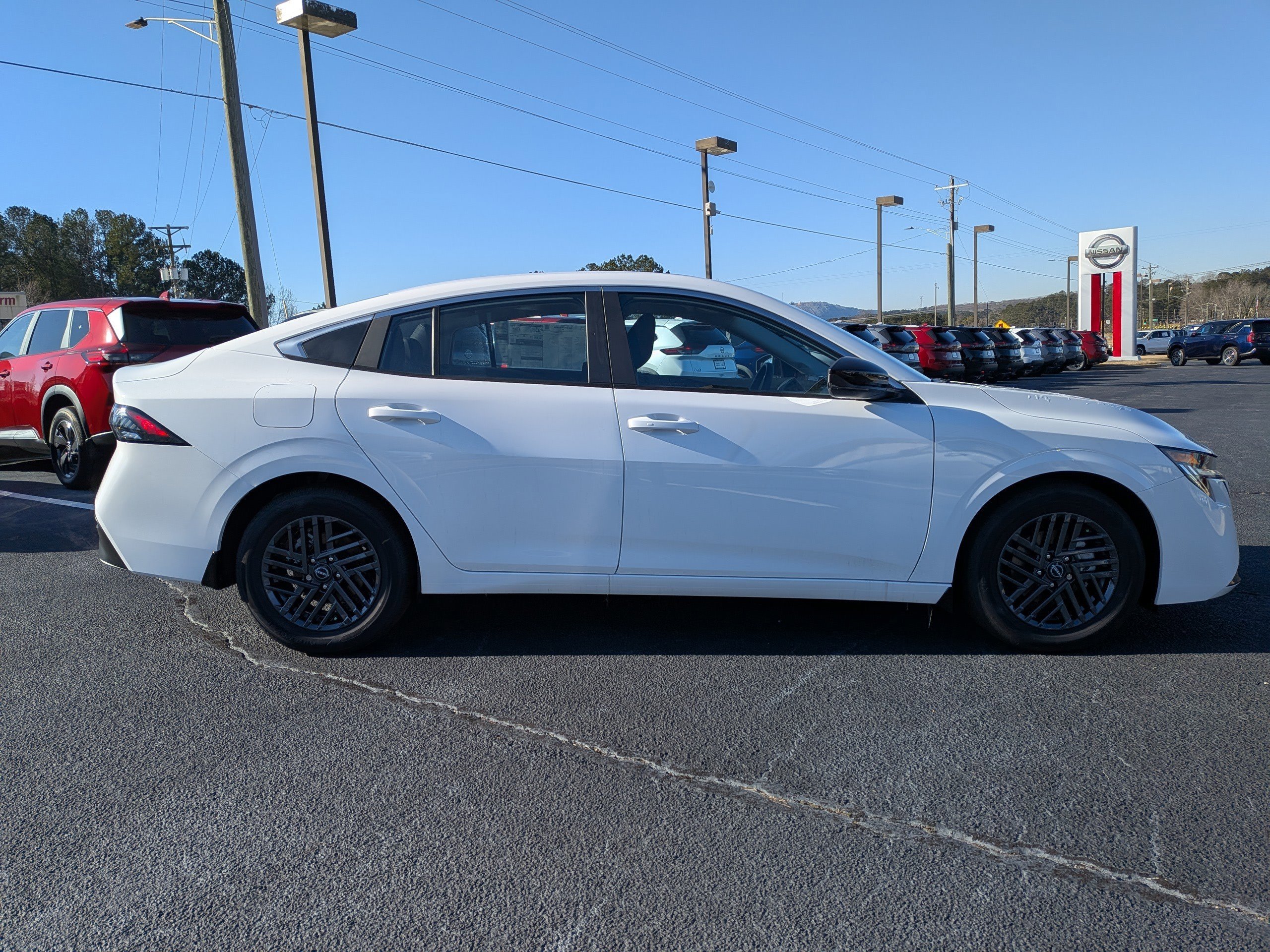 Check out all these great options Floor Mat Package, SV Convenience Package (6 Speakers, Ambient Lighting, Auto Diming Inside Mirror, Heated Exterior Mirrors, Heated Front Seats, Heated Steering Wheel, I-Key with Approach Unlock All Plus Walk Away Lock, Soft Knee Pad, Synthetic Leather Steering Wheel, Visor DR/AS w/LED Light, and Wireless Charging For Personal Devices), SV Moonroof Package (Power Tilt Sliding Sunroof with Manual Sunshade), CVT with Xtronic, Charcoal Cloth, 16" Machined Alloy Wheels, 4 Speakers, 4-Wheel Disc Brakes, ABS brakes, Air Conditioning, Alloy wheels, AM/FM radio: Sirius, Auto High-beam Headlights, Automatic temperature control, Body Colored Splash Guards (4-Piece), Brake assist, Bumpers: body-color, Delay-off headlights, Driver door bin, Driver vanity mirror, Dual front impact airbags, Dual front side impact airbags, Electronic Stability Control, Four wheel independent suspension, Front anti-roll bar, Front Bucket Seats, Front Center Armrest, Front reading lights, Fully automatic headlights, Illuminated entry, Knee airbag, Low tire pressure warning. The price includes $500 - Nissan MY26 Sentra Customer Cash (All)