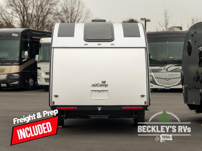 nuCamp RV TAB 360 CS teardrop trailer Boondock highlights: Two Burner Cooktop, Central A/C and Heat Pump, Boondock Molded Fenders, 24" Smart TV, Two Person Dinette, Exterior 30L 12-Volt Cooler. You're going to love camping in this teardrop clamshell trailer! Once you arrive at the campground, you can make lunch on the exterior rear hatch kitchen. The interior 5 cu. ft. 12-volt compressor refrigerator will provide more food storage, and an optional microwave can be added inside for the option to heat up quick meals indoors. You're sure to get a great night's rest on the twin-size bed, and the booth dinette can convert to a second twin-size bed so you can sleep two comfortably. The TAB 360 CS teardrop trailer by nuCamp RV lets you take comfort with you wherever you roam! Since the kitchen has been moved outdoors with a hatch door, you'll enjoy a more spacious interior, while still experiencing an easy tow. Outside, there are aggressive off-road tires, a Nautilus water system with an external shower, plus a diamond plate storage tub. You'll love the look of the premium soft-close cabinetry, and the composite flooring will be easy to keep clean. There is also an Alde heating/hot water system, dual stargazer windows, and a power roof fan to name a few more conveniences.