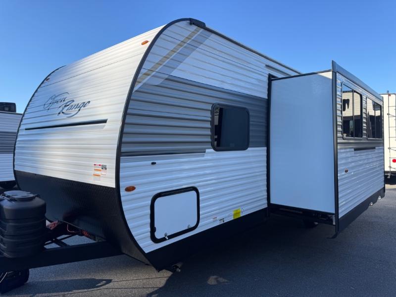 Open Range RV Colt travel trailer 26DBS highlights: Front private bedroom. Outside kitchen. Large slide out. Kitchen pantry. This travel trailer with double-size bunks is spacious and cozy! Once you've unloaded the exterior storage, your crew can put out the 16' power awning with LED lights, then start lunch on the outside kitchen. If the weather isn't cooperating, there is a three-burner cooktop and microwave oven inside, plus comfortable seating on the jack-knife sofa and booth dinette. You're sure to appreciate the front private bedroom with an RV queen bed, dual wardrobes, plus an overhead shelf for books, and the rear corner full bath will let everyone freshen up each day! With any Colt travel trailer by Open Range RV, you can be sure you're getting a budget-friendly unit designed to fit your lifestyle! Each one is built to last with a PVC roofing membrane and built-in A-frame, plus there are nitrogen-filled radial tires and self-adjusting electric brakes for easy towing. You will appreciate the utilities that include 30-amp service, an A/C unit, and an on-demand tankless water heater. A few interior comforts include vinyl flooring throughout, solid hardwood cabinet doors, and residential grade kitchen countertops to make your space feel more like home. There are additional features available, depending on the edition you choose, along with available options to further customize your Colt travel trailer!