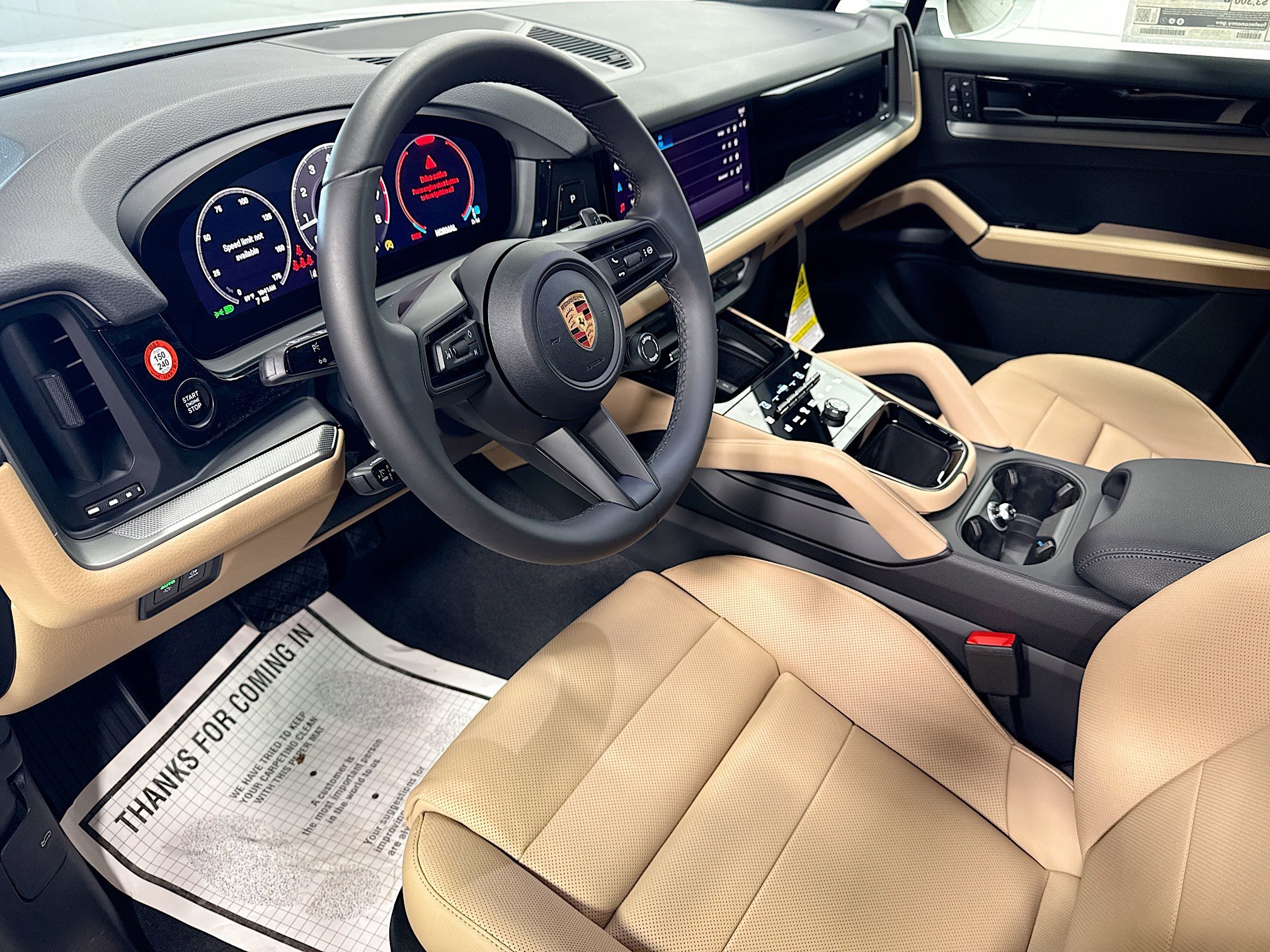 The 2026 Porsche Cayenne offers a dynamic and powerful driving experience with its Intercooled Turbo Premium Unleaded V-6 3.0L engine and all-wheel drive system. The interior features a standard design in Black with Mojave Beige accents, and the vehicle is equipped with advanced technology and safety features. Pricing is inclusive of all applicable manufacturer incentives and may not be combined with other exclusive offers. See dealer for details.