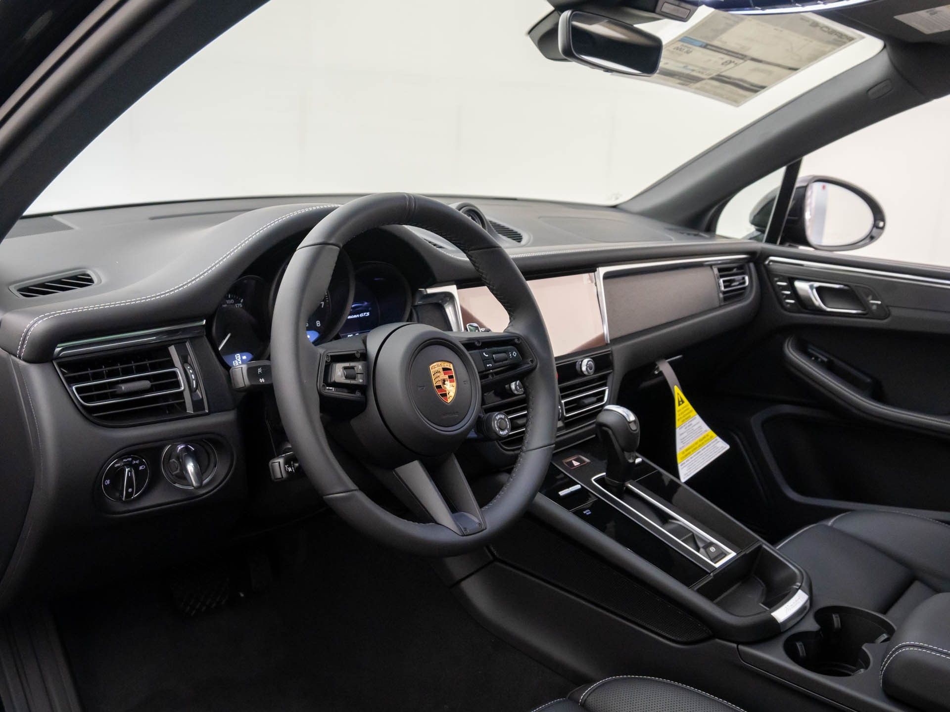 The 2026 Porsche Macan GTS is a new all-electric SUV on the lot at Porsche Barrington. It features a V6 twin turbo engine, all-wheel drive, and a 7-speed automatic transmission with auto-shift. The vehicle is finished in black with a black interior and offers a premium driving experience with advanced technology and comfort features.