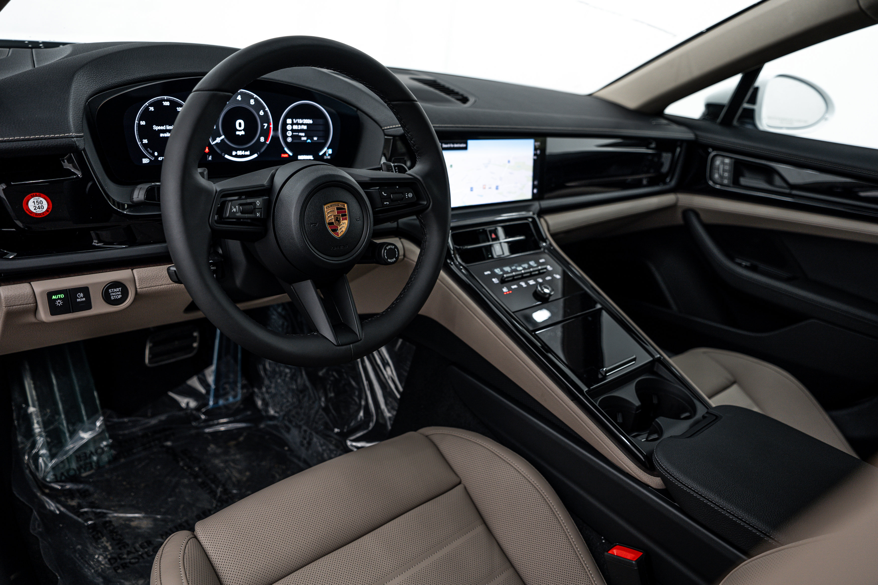The 2026 Porsche Panamera 4 in White features a Twin Turbo Premium Unleaded V-6 engine and comes with a premium package including navigation, a BOSE Surround Sound System, and a premium interior with black/limestone beige seats. This luxury high-performance sedan offers advanced technology, premium comfort, and a dynamic driving experience with all-wheel drive and an automatic transmission.