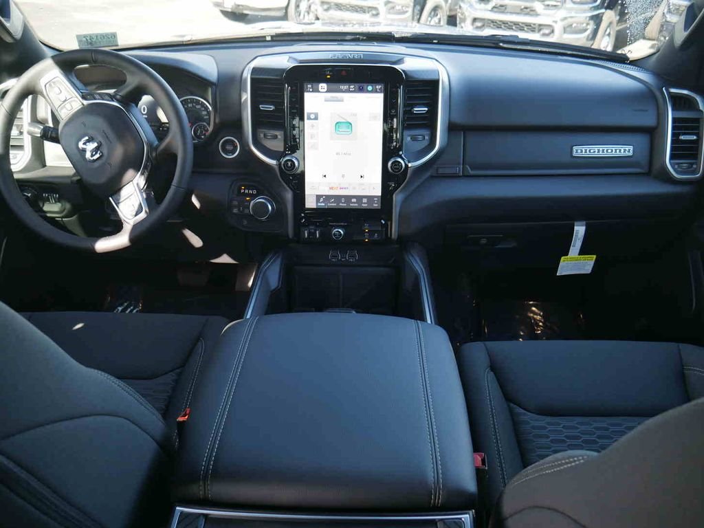 Our mild-hybrid HEMI 2026 Ram 1500 Big Horn Crew Cab 4X4, equipped with the Level 2 Equipment Package, looks fantastic in Forged Blue Metallic. Powered by a 5.7 Liter HEMI eTorque V8 with a 48V Mild-Hybrid system providing 395hp to an 8 Speed Automatic transmission for smart capability plus impressive towing. This Four Wheel Drive truck features responsive handling at work or play, and it achieves nearly 22mpg on the highway, thanks to its rugged design. Our Ram 1500 stands strong and looks great, complemented by matching accents, a G/T exhaust, and alloy wheels. Many rewarding details are standard in our Big Horn cabin.