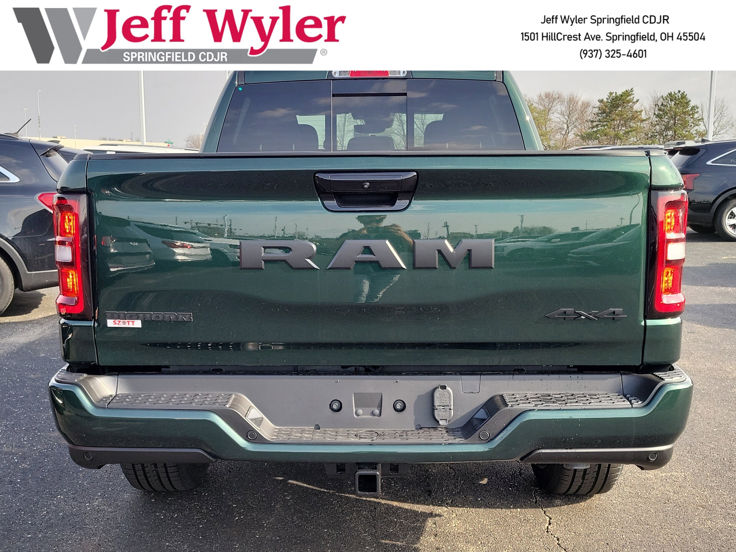 Jeff Wyler Springfield Auto Mall is delighted to offer this wonderful 2026 Ram 1500 Big Horn/Lone Star in Serrano Green Metallic. Well equipped with: Big Horn Level 2 Equipment Group, Night Edition, Quick Order Package 23Z Big Horn, MyFlexCare Service Plan, MOPAR Front and Rear Rubber Floor Mats, and more. 19/24 City/Highway Available Incentives: $3500 - 2026 National Retail Bonus Cash . Exp. 04/30/2026.