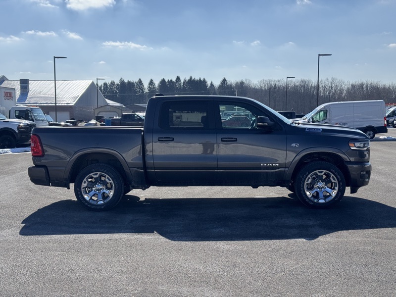 Bed Utility Group (Exterior 115V AC Outlet, MOPAR 4 Adjustable Cargo Tie-Down Hooks, MOPAR Spray in Bedliner, and Pick-Up Box Lighting), Big Horn Level 2 Equipment Group (115V Auxiliary Power Outlet, 115V Auxiliary Rear Power Outlet, 12" Touchscreen Display, 2nd Row in Floor Storage Bins, 3 Rear Seat Head Restraints, 4 Way Front Headrests, 400W Inverter, 4G LTE Wi-Fi Hot Spot, 9 Amplified Speakers with Subwoofer, Air Conditioning ATC with Dual Zone Control, Apple CarPlay, Auto Power-Folding Mirrors, Auto-Dimming Exterior Driver Mirror, Auto-Dimming Rear-View Mirror, Black Exterior Mirrors, Black Premium Power Mirrors, Body Color Fender Flares, Bucket Seats, Center Console Parts Module, Cluster 7.0" TFT Color Display, Configurable Drive Mode, Connected Travel and Traffic Services, Connectivity - US/Canada, Convex Wide-Angle Exterior Mirror Insert, Deluxe Cloth Bucket Seats, Disassociated Touchscreen Display, Exterior Mirrors Courtesy Lamps, Exterior Mirrors with Heating Element, Exterior Mirrors with Supplemental Signals, Front Seat Back Map Pockets, Full Length Floor Console, Global Telematics Box Module, Glove Box Lamp, Google Android Auto, GPS Antenna Input, GPS Navigation, HD Radio, Heated Front Seats, Heated Steering Wheel, Integrated Center Stack Radio, Integrated Voice Command with Bluetooth, Leather Wrapped Steering Wheel, LED Dome Lamp with on/Off Switch, LED Footwell Lighting, Manual Adjust 4-Way Front Passenger Seat, Media Hub with 2 Charge Only USBs, Overhead LED Lamps, Power 2-Way Driver Lumbar Adjust, Power Adjust 8-Way Driver Seat, Power Adjustable Pedals, Premium Overhead Console, Radio: Uconnect 5 Navigation with 12.0" Display, Rear 60/40 Folding Seat, Rear Center Armrest, Rear Power Sliding Window, Rear Window Defroster, Remote Tailgate Release, Security Alarm, SiriusXM Radio Service, SiriusXM with 360L, Steering Wheel Mounted Audio Controls, Sun Visors with Illuminated Vanity Mirrors, Universal Garage Door Opener, and USB Host Flip), Quick Order Package 27Z Big Horn, Sport Appearance Package (Black Interior Accents, Body Color Door Handles, Body Color Front Bumper, Body Color Rear Bumper with Step Pads, Body Color Tailgate Handle, Grille Surround 1 Body Color Texture 1 Black, and RAM Grille Badge - Chrome). Granite Crystal Metallic Clearcoat 2026 Ram 1500 Big Horn/Lone Star 4WD 8-Speed Automatic HEMI 5.7L V8 Multi Displacement VVT eTorque.