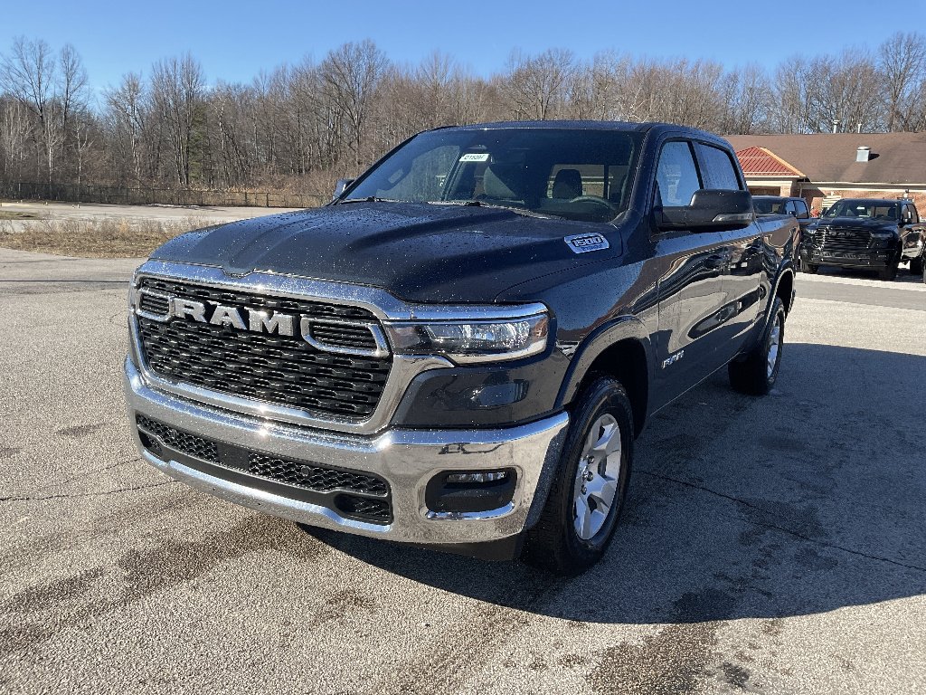 Experience power and versatility with the new 2026 Ram 1500 Big Horn 4x4 Crew Cab! With only 1 mile on the odometer, this truck features the robust Pentastar eTorque 3.6L V6 engine with 305hp, paired to an 8-speed automatic transmission and advanced 4x4 capability for confident handling in any condition. Enjoy modern conveniences like heated front seats, a heated leather-wrapped steering wheel, power-adjustable pedals, and an 8.4-inch Uconnect touchscreen with Apple CarPlay, Android Auto, and Bluetooth. Safety is a priority with advanced features including Blind Spot Detection, Forward Collision Warning-Plus, Cross Path Detection, ParkSense front and rear sensors, and a ParkView rear camera. The spacious Crew Cab seats five comfortably and offers split-folding rear seats, rear power sliding window, and premium cloth upholstery. With LED headlights and fog lights, 18-inch alloy wheels, chrome bumpers, and a Class IV tow hitch, this Big Horn is ready for work or play.