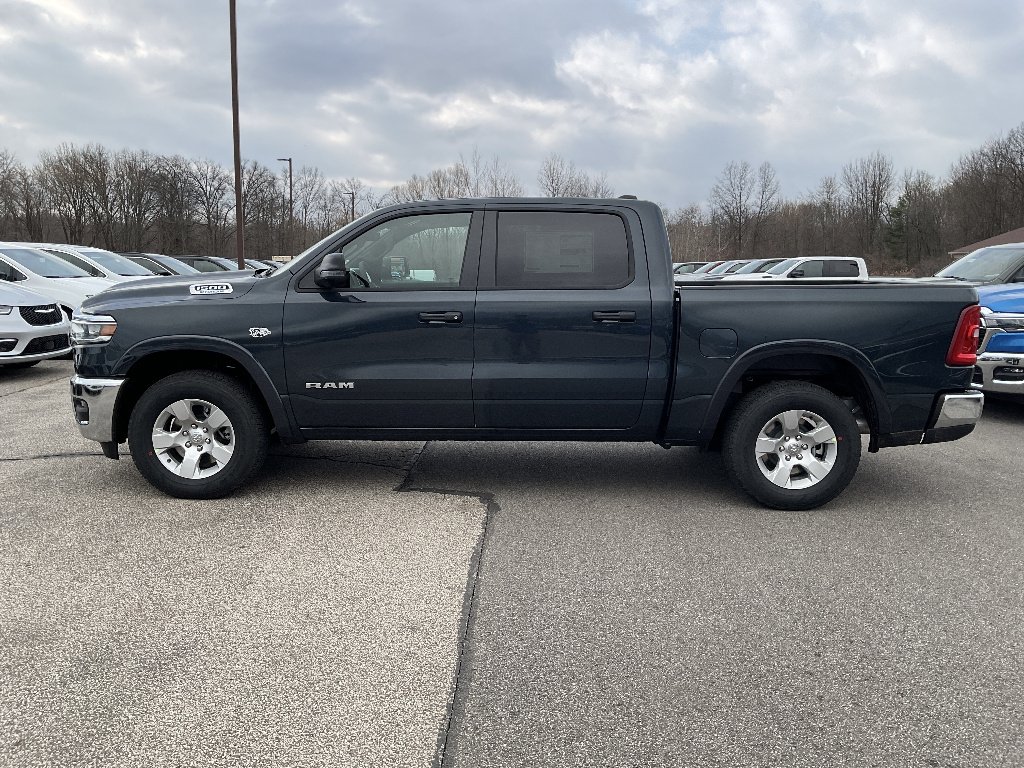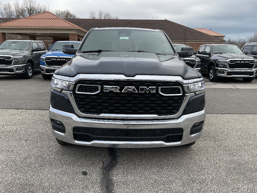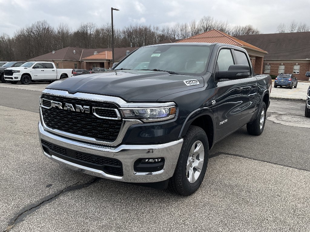 Drive into the future with the 2026 Ram 1500 Big Horn 4x4 Crew Cab! This new truck features the powerful HEMI eTorque 5.7L V8 engine with 395hp and 410 lb-ft of torque, paired with an efficient mild hybrid system and 8-speed automatic transmission for impressive performance and fuel economy. Enjoy advanced safety features like Blind Spot Detection, Forward Collision Warning-Plus, and Active Lane Management. Stay comfortable with heated front seats, a heated steering wheel, power-adjustable pedals, and premium cloth bucket seats. The spacious Crew Cab offers plenty of room for passengers and gear, while the 5'7" box and Class IV towing package are ready for any job. Tech highlights include an 8.4" Uconnect touchscreen, Apple CarPlay, Android Auto, Bluetooth, and a 4G LTE Wi-Fi hotspot. With ParkSense front/rear parking sensors, ParkView rear camera, and remote start, convenience is at your fingertips. Chrome accents, 18" aluminum wheels, and LED lighting complete the bold Big Horn look. Experience capability, comfort, and innovation-test drive the 2026 Ram 1500 Big Horn today!