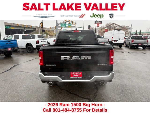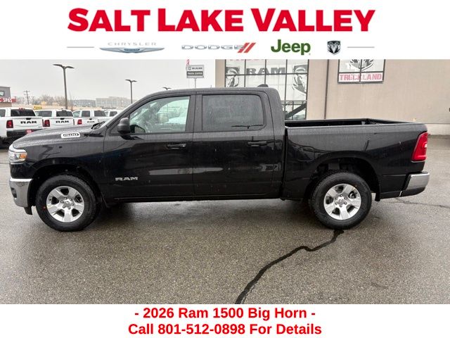 Get the job done and have fun doing it with the new Ram 1500 from Salt Lake Valley CDJR! Power, durability, and innovation come together in every Ram truck. Whether you’re working hard or exploring Utah’s backroads, the 1500 is built to handle it all. Call us today at 801-484-8755 to schedule a time to check it out! 2026 Ram 1500 Big Horn/Lone Star Diamond Black Crystal Pearlcoat 3.0L I6 4WD.