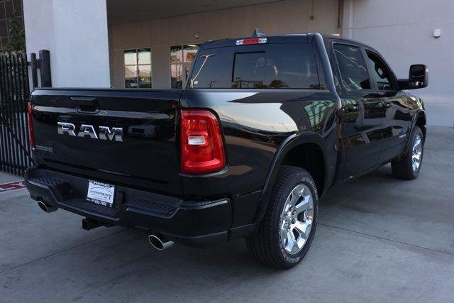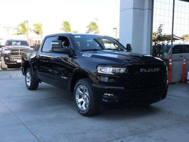 The new 2026 Ram 1500 Big Horn Crew Cab 4x2 features a Diamond Black Crystal Pearl-Coat exterior and a black interior. This vehicle is powered by a 3.0L I6 Hurricane SO Twin Turbo ESS engine and comes with an 8-speed automatic transmission. The Big Horn Level 1 Equipment Group includes features such as adaptive cruise control, Apple CarPlay, Android Auto, backup camera, blind spot monitor, Bluetooth, fog lights, forward collision warning, heated seats, interior accents, keyless entry, lane departure warning, parking sensors / assist, push start, remote start, satellite radio ready, side-impact air bags, tow package, and WiFi hotspot.