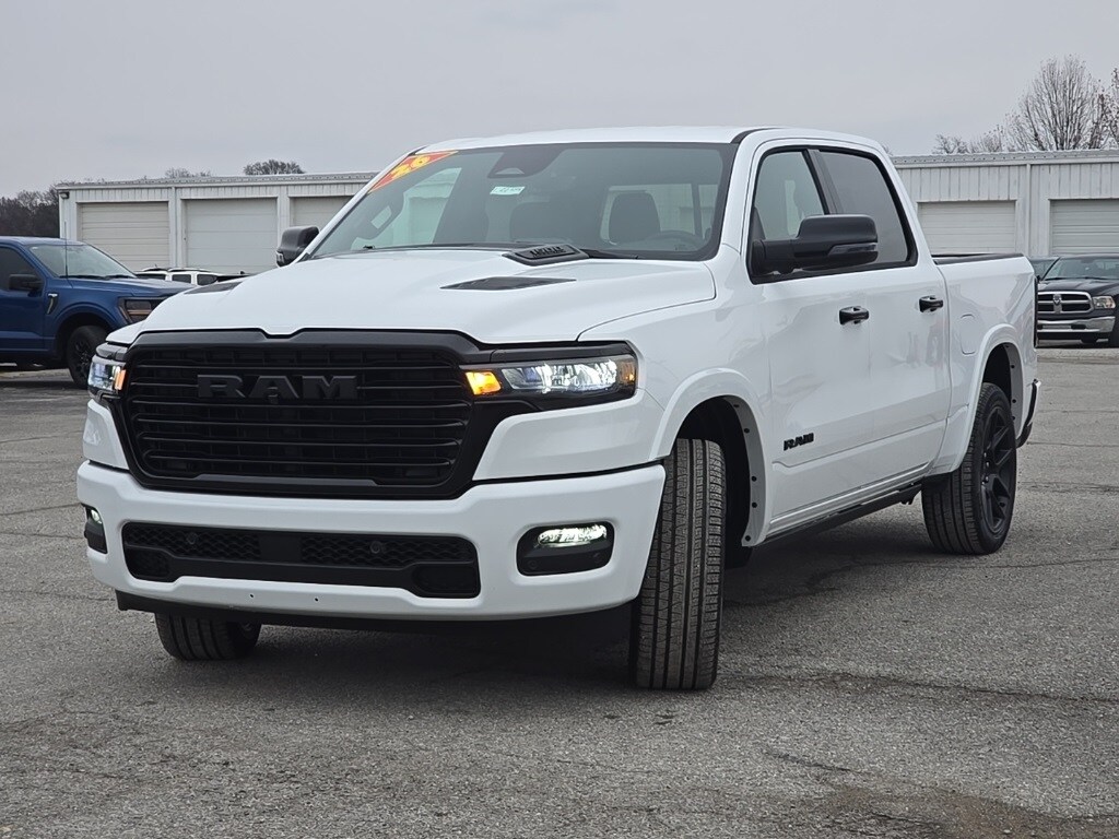 Bright White Clearcoat 2026 Ram 1500 Laramie 4WD 8-Speed Automatic 3.0L I6 14.4" Touchscreen Display, 4G LTE Wi-Fi Hot Spot, Accent Color Door Handles, Accent Color Premium Power Mirrors, Accent Color Tailgate Handle, Anti-Spin Differential Rear Axle, Auto Power-Folding Mirrors, Auto-Dimming Exterior Driver Mirror, Black Exterior Truck Badging, Black Headlamp Bezels, Black Interior Accents, Black Painted Exterior Mirrors Caps, Black Tail Lamp Bezels, Body Color Front Bumper, Body Color Rear Bumper with Step Pads, Cluster 12" TFT Color Display, Connected Travel and Traffic Services, Connectivity - US/Canada, Convex Wide-Angle Exterior Mirror Insert, Dual Exhaust with Black Tips, Exterior Mirrors Approach Lamps, Exterior Mirrors Courtesy Lamps, Exterior Mirrors with Heating Element, Exterior Mirrors with Memory, Exterior Mirrors with Supplemental Signals, Front Passenger Interactive Display, GPS Navigation, Grille Surround 3 Black Texture 2 Black, Harman/Kardon 19 Speaker Premium Sound, Integrated Center Stack Radio, Integrated Voice Command with Bluetooth, Laramie Level 2 Equipment Group, Navigation System, Night Edition, Pirelli Brand Tires, Power Tailgate, Proximity Approach/Departure Lamps, Quick Order Package 21H Laramie, Radio: Uconnect 5 Nav with 14.4" Display, Rain Sensitive Windshield Wipers, RAM Grille Badge - Black, SiriusXM Radio Service, SiriusXM with 360L, Sport Performance Hood, USB Host Flip, Wheels: 22" x 9" Forged Aluminum. Not all customers qualify for all rebates. Price includes: $3500 - 2026 National Retail Consumer Cash . Exp. 02/02/2026