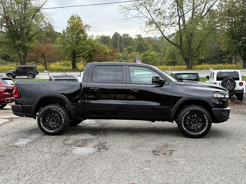 Diamond Black Crystal Pearlcoat 2026 Ram 1500 Rebel 4WD 8-Speed Automatic 3.0L I6. Price includes $1000 - 2026 National Bonus Cash and $3500 - 2026 National Retail Bonus Cash. All vehicles are subject to prior sale. Price does not include applicable tax, title, registration fee and $899 dealer fee.