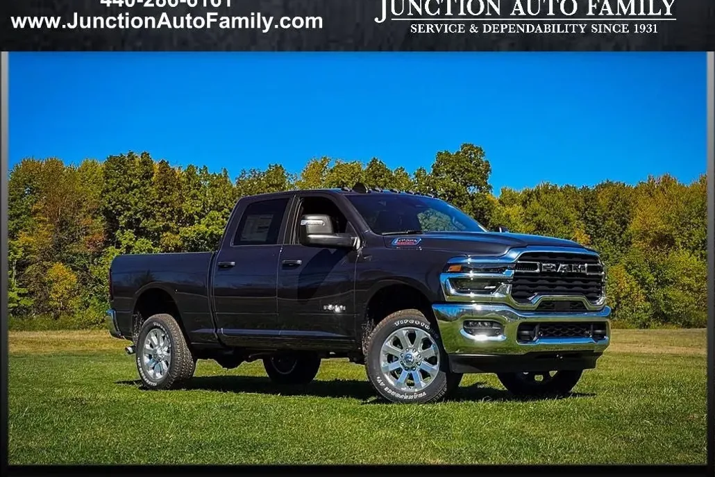 Forged Blue Metallic 2026 Ram 2500 Big Horn 4WD 8-Speed Automatic 6.4L V8 This Ram 2500 has many features and is well equipped including. Get your next new car at Junction Auto in Chardon-20 minutes from Mentor, Mayfield, and Chagrin. Fifth generation family owned serving Northeast Ohio since 1931, come in today or visit junctionautofamily.com, you'll be glad you did! Price includes: $1000 - 2026 National Bonus Cash . Exp. 11/03/2025