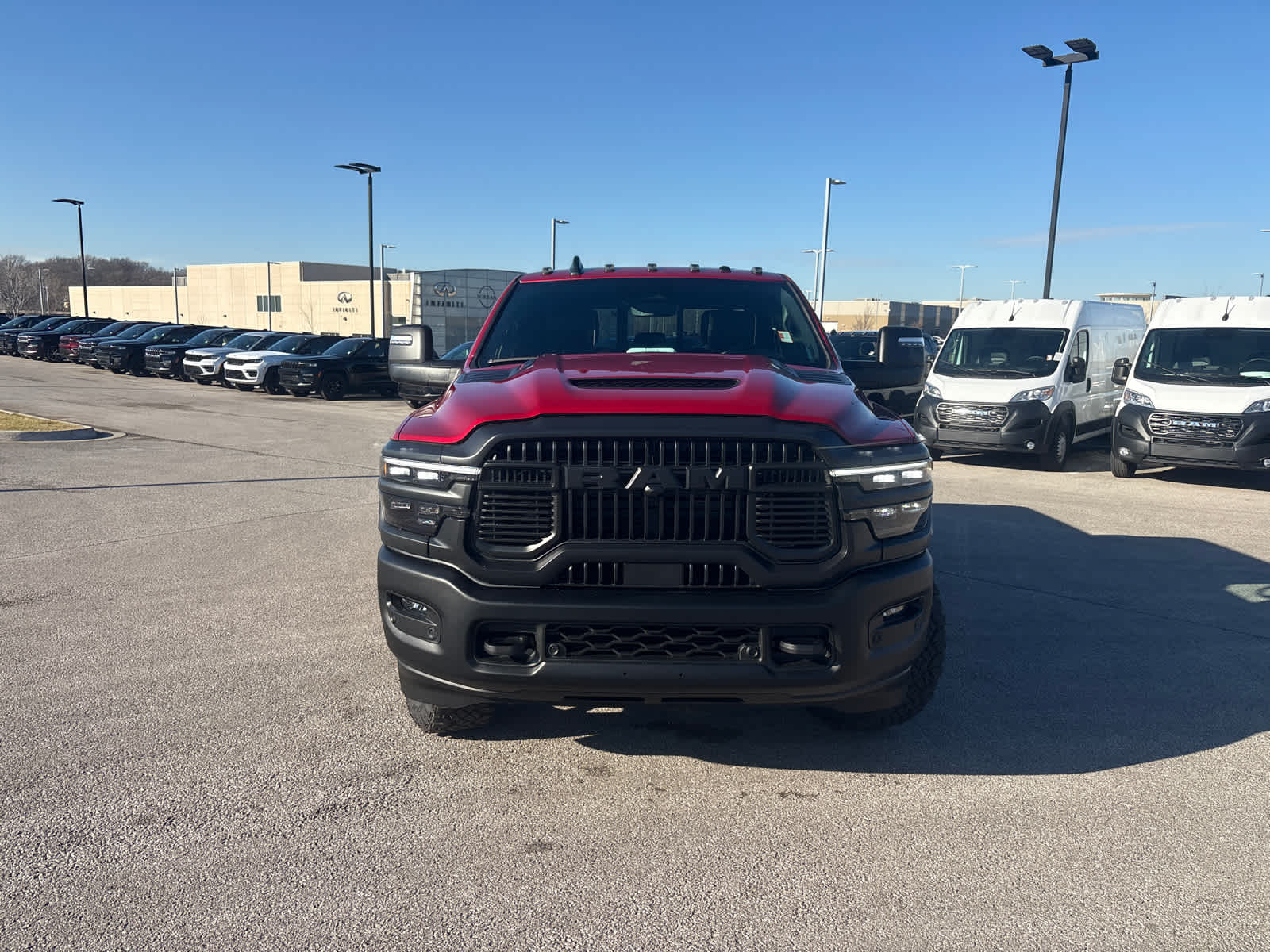 Heated/Cooled Seats, Nav System, Moonroof, Back-Up Camera, 4x4, Aluminum Wheels, Bed Liner, Hitch, Power Sunroof, Engine: 6.7L I6 Cummins HO Turbo Diesel. Rebel Level 2 Equipment Group, Turbo Charged Engine. Rebel trim, Molten Red Pearlcoat exterior and Black interior. Your values driven family owned dealership in the Heart of Johnson County.