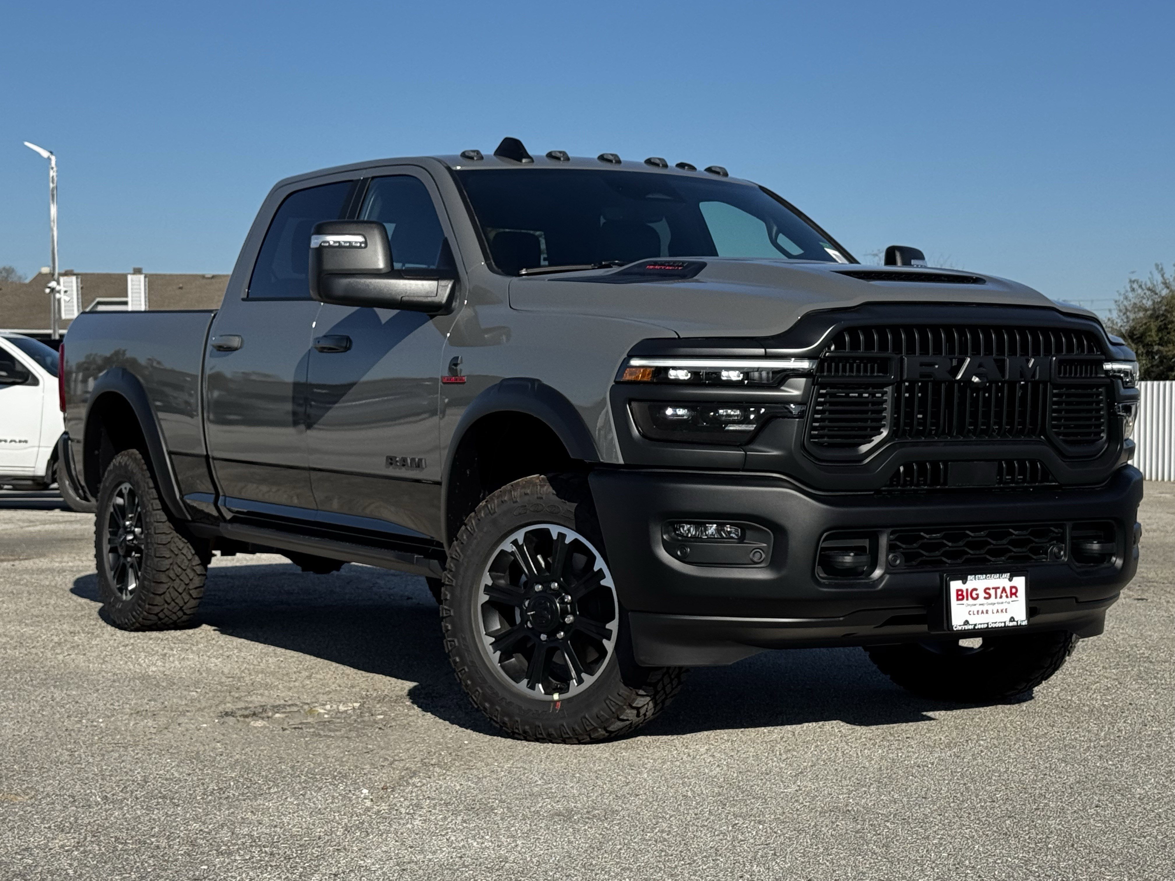 Big Star Chrysler Jeep Dodge Ram Fiat is pumped up to offer this fantastic 2026 Ram 2500. Rebel Ceramic Gray Clearcoat 6.7L I6 8-Speed Automatic 4WD Priced below KBB Fair Purchase Price! Call us at 832-300-1440 for immediate assistance from a knowledgeable customer service representative. Big Star Chrysler Dodge Jeep Ram FIAT has been serving the Houston car purchasing community for over 30 years. We make all efforts to ensure online accuracy pertaining to pricing and availability. It could take up to 72 hours for information to update online. Additional rebates may be available to consumers. Prices are subject to taxes, titling, and license fees in addition to the advertised price. Chrysler incentives are subject to change at manufacturer’s discretion.