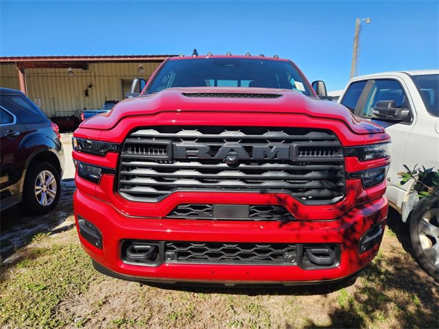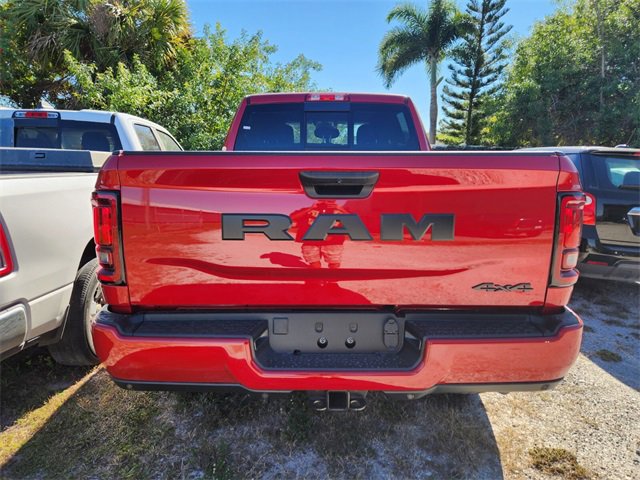 The 2026 Ram 2500 Black Express Crew Cab 4x4 features a Molten Red Pearl-Coat exterior and a black interior. Powered by a 6.7L Intercooled Turbo Diesel I-6 engine, this heavy-duty truck offers advanced safety features, connectivity, and towing capability. The vehicle is equipped with an 8-speed automatic transmission, four-wheel drive, and a range of comfort and convenience options. Please contact the dealer for the most current information and details.