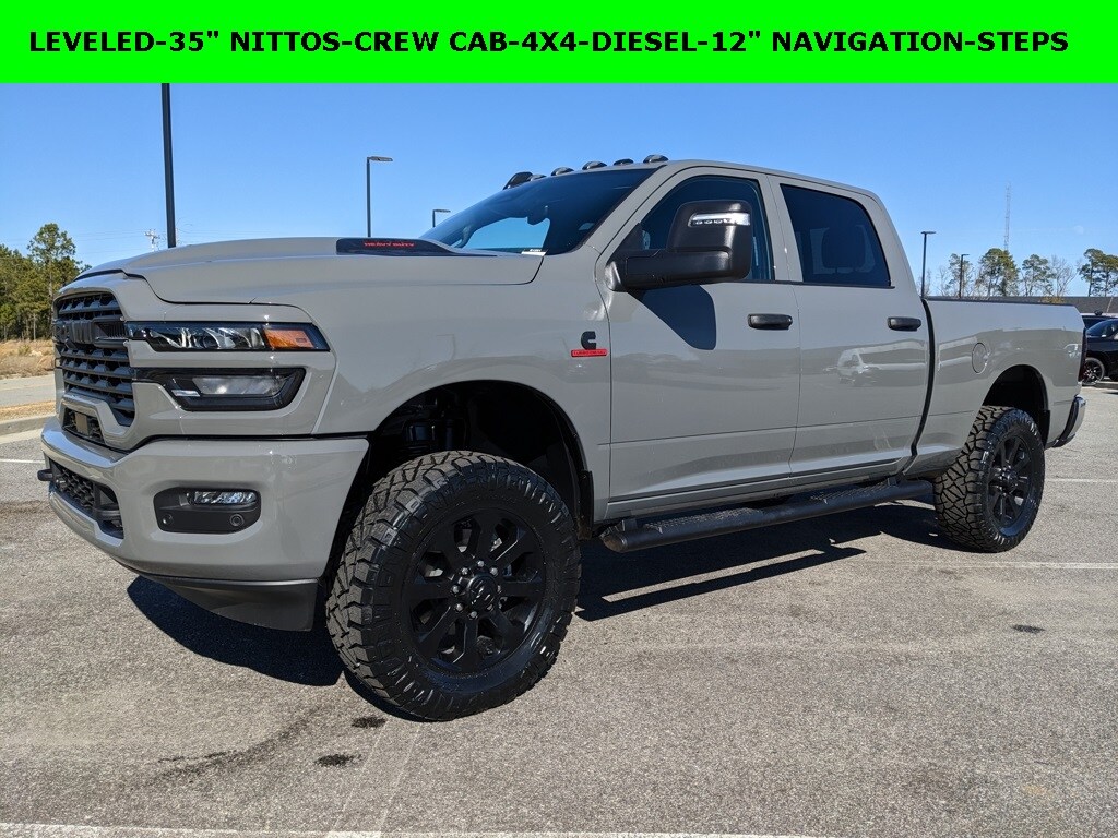Price includes rebates. Not all customers may qualify for all rebates. $1000 - 2026 National Bonus Cash . Exp. 03/02/2026 Savings applied to everyone. Includes $1000 finance assistance. Must take new retail delivery by 02/04/2024. The Jimmy Britt Premium Delivery Program lets you buy this vehicle right from the comfort of your couch. We frequently deliver vehicles nationwide, and even arrange test drives at home, if you are nearby. We will send you a personal video on any vehicle you are interested in. Call, email, or text us for details. (Plus, you get our low-price guarantee and two free oil changes!) Factory MSRP: $79,135 Black Express Bluetooth / Hands-free, Apple Car Play / Android Auto Compatible, Back-Up Camera w/ Guidelines, Cruise Control, Navigation, Portable Audio Connection, Power Locks, Power Windows, Premium Wheels, Security System, Multi-function Steering Wheel, 4x4/4WD, Level I Equipment Group, Apple Carplay, Android Auto, Lifted, Oversized Tires, *Premium Delivery Service Available*, iphone / Droid Navigation Compatible, 35" NITTO RIDGE GRAPPLER TIRES, LEVELED, 2500 Tradesman Black Express, 4D Crew Cab, 6.7L I6, 4WD, Ceramic Gray Clearcoat, Black w/Cloth 40/20/40 Bench Seat or Cloth 40/20/40 Bench Seat, 12" Touchscreen Display, 2 Way Rear Headrest Seat, 3.42 Axle Ratio, 4 Way Front Headrests, 40/20/40 Split Bench Seat, 400W Inverter, 4G LTE Wi-Fi Hot Spot, 5th Wheel/Gooseneck Towing Prep Group, AM/FM radio: SiriusXM, Apple CarPlay, Apple CarPlay/Android Auto, Auto Power-Folding Mirrors, Auto-Dimming Rear-View Mirror, Black Exterior Mirrors, Body Color Grille-Surround, Cloth 40/20/40 Bench Seat, Connectivity - US/Canada, Dash Pass Thru Wire Circuits, Disassociated Touchscreen Display, Emergency Vehicle Alert System (EVAS), Exterior 115V AC Outlet, Exterior Mirrors Courtesy Lamps, For Details Visit DriveUconnect.com For More Info Call 800-643-2112.