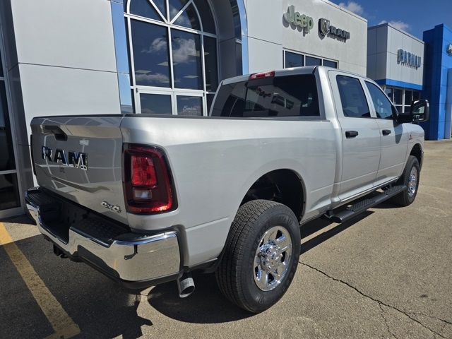 2026 Ram 2500 Tradesman 4WD 8-Speed Automatic 6.7L I6 Silver Zynith. This vehicle features a 12" touchscreen display, 400W inverter, 4G LTE Wi-Fi hot spot, anti-spin differential rear axle, Apple CarPlay, auto-dimming rear-view mirror, Black exterior mirrors, bright front and rear bumpers, carpet floor covering, center hub, chrome grille surround, cloth bench seat, cold weather group, connectivity - US/Canada, emergency vehicle alert system, engine block heater, exterior 115V AC outlet, exterior mirrors courtesy lamps, For More Info, call 800-643-2112, Google Android Auto, GPS navigation, HD radio, manual folding exterior mirrors, Mopar black tubular side steps, Mopar winter front grille cover, off-road info pages, ParkSense front/rear park assist system, power adjust mirrors, power heated folding telescope mirrors, power-adjustable convex aux mirrors, Quick Order Package 24A Tradesman, rear power sliding window, selectable tire fill alert, SiriusXM radio service, tinted acoustic windshield glass, Tradesman Level 2 Equipment Group, trailer tow pages.