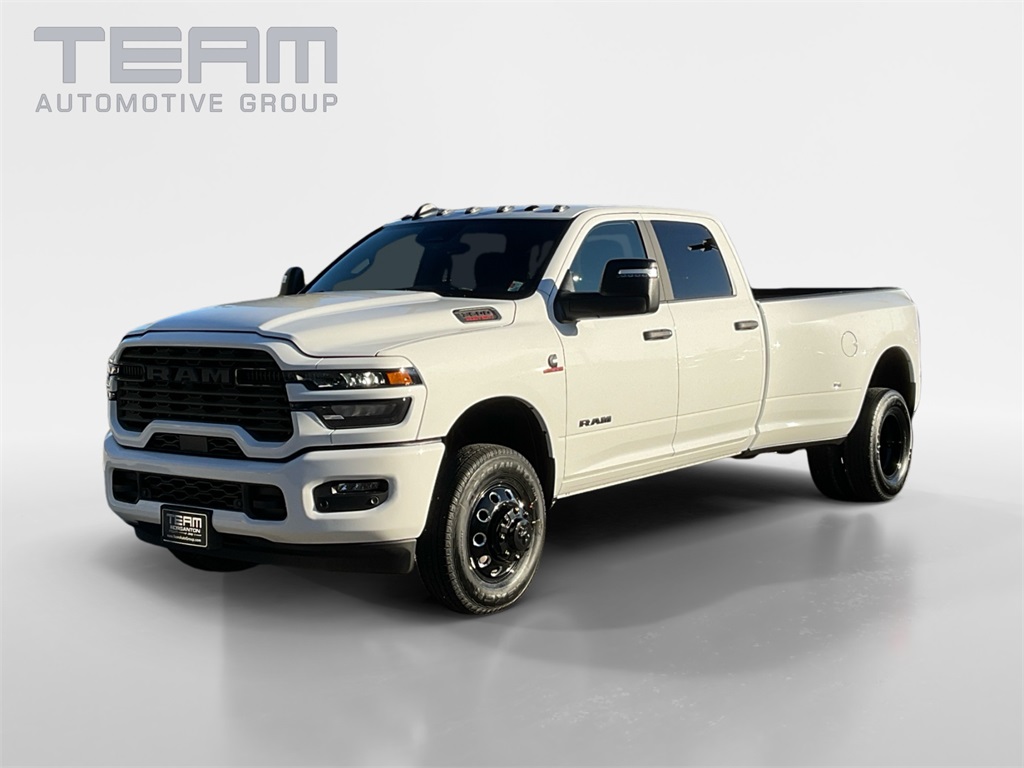 2026 Ram 3500 Big Horn Bright White Clearcoat 6.7L I6 4WD. Check out all these great options. Big Horn Level 1 Plus Equipment Group includes a 12" touchscreen display, dual rear wheels, 4G LTE Wi-Fi hot spot, 9 Alpine speakers with subwoofer, air conditioning with dual zone control, Alexa built-in, Apple CarPlay, automatic power-folding mirrors, auto-dimming rear-view mirror, black exterior mirrors, cloth premium bench seat, connected travel and traffic services, dual glove boxes, emergency vehicle alert system, exterior mirrors with heating element, exterior mirrors with supplemental signals, folding flat load floor storage, footwell courtesy lamp, front armrest with cupholders, front center seat cushion storage, front seat back map pockets, global telematics box module, glove box lamp, Google Android Auto, GPS navigation, HD radio, integrated voice command with Bluetooth, LED bed lighting, locking lower glove box, luxury steering wheel, manual adjust 4-way front passenger seat, mirror running lights, MOPAR deployable bed step, MOPAR spray-in pickup bedliner, off-road information pages, power 2-way driver lumbar adjust, power adjust 8-way driver seat, power adjust mirrors, power heated fold telescopic mirrors, power telescoping mirrors, power-adjustable convex aux mirrors, radio: Uconnect 5 navigation with 12.0" display, rear 60/40 folding seat, rear dome with on/off switch lamp, remote start system, SiriusXM radio service, SiriusXM with 360L, steering wheel mounted audio controls, storage tray, and trailer tow pages. Heated seats and wheel group includes heated front seats and heated steering wheel. Night edition includes black exterior truck badging, black interior accents, black wheel center hub, body color grille surround, gloss black nostrils/molded in color black grille, painted front bumper, and painted rear bumper.