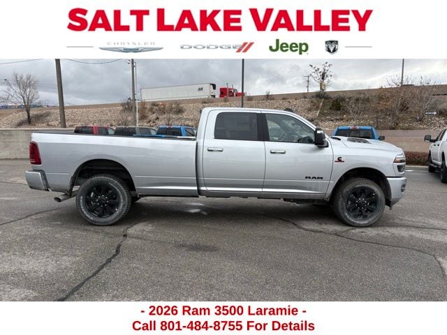 Get the job done and have fun doing it with the new Ram 3500 from Salt Lake Valley CDJR! Power, durability, and innovation come together in every Ram truck. Whether you’re working hard or exploring Utah’s backroads, the 3500 is built to handle it all. Call us today at 801-484-8755 to schedule a time to check it out! 2026 Ram 3500 Laramie Silver Zynith 6.7L I6 4WD.